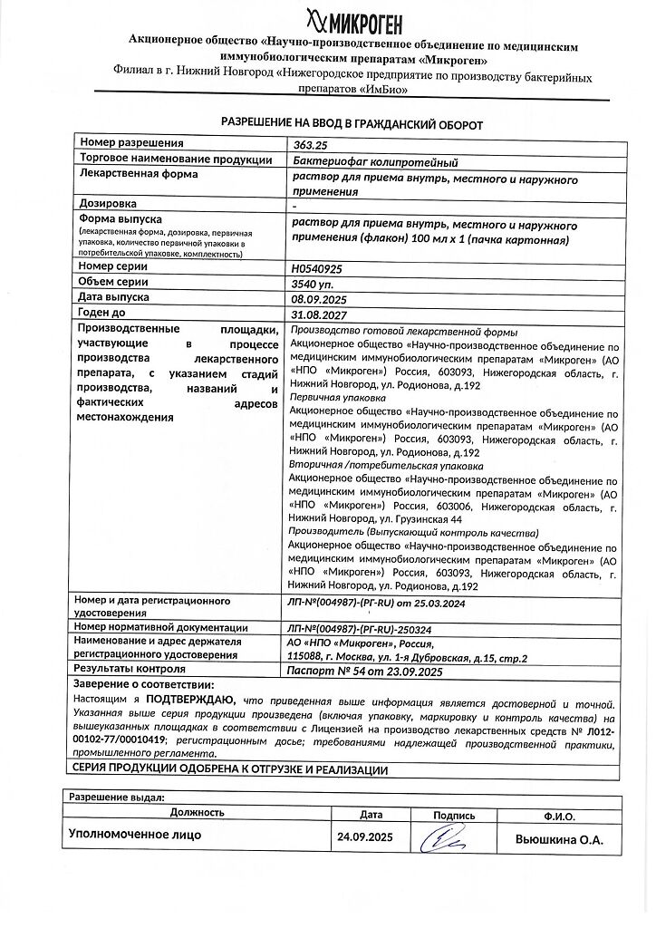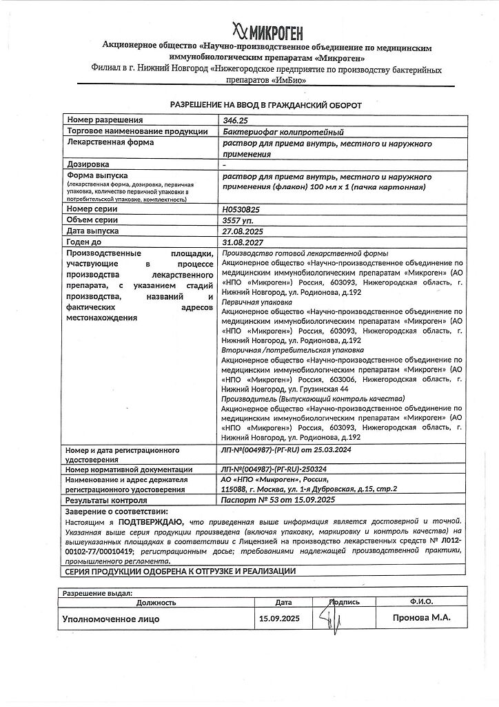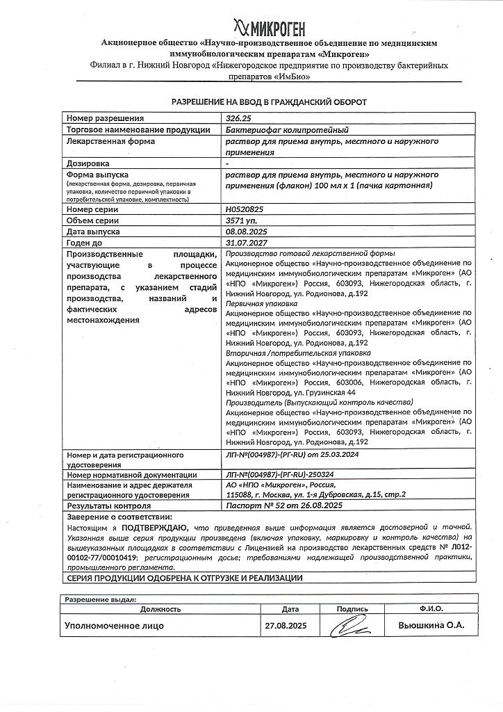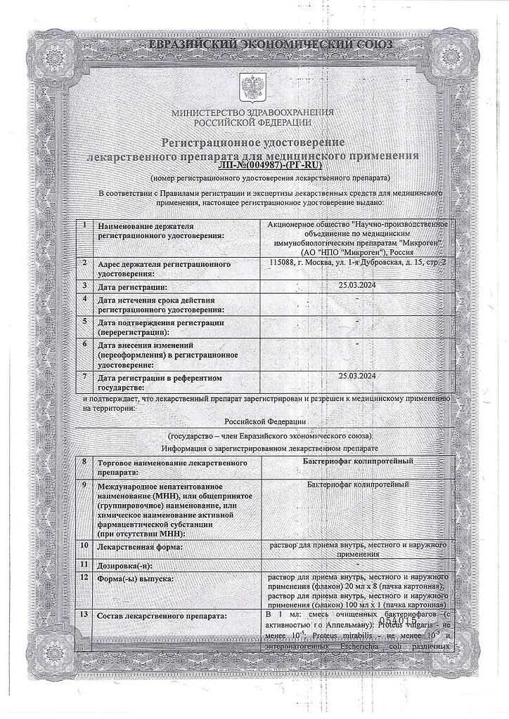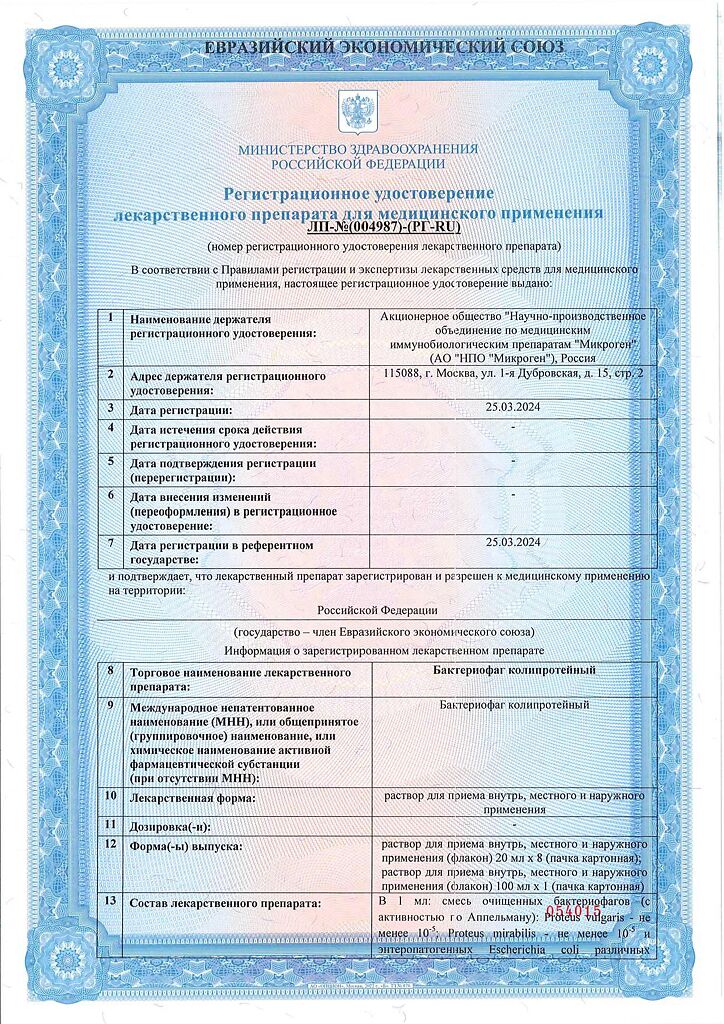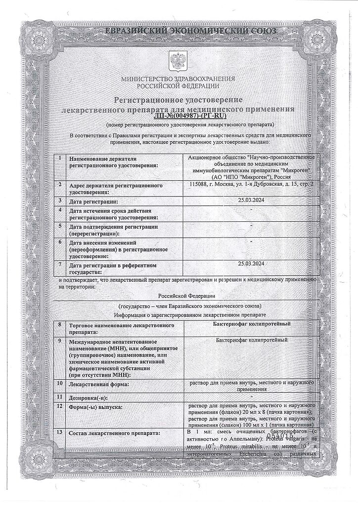 Бактериофаг колипротейный применяется