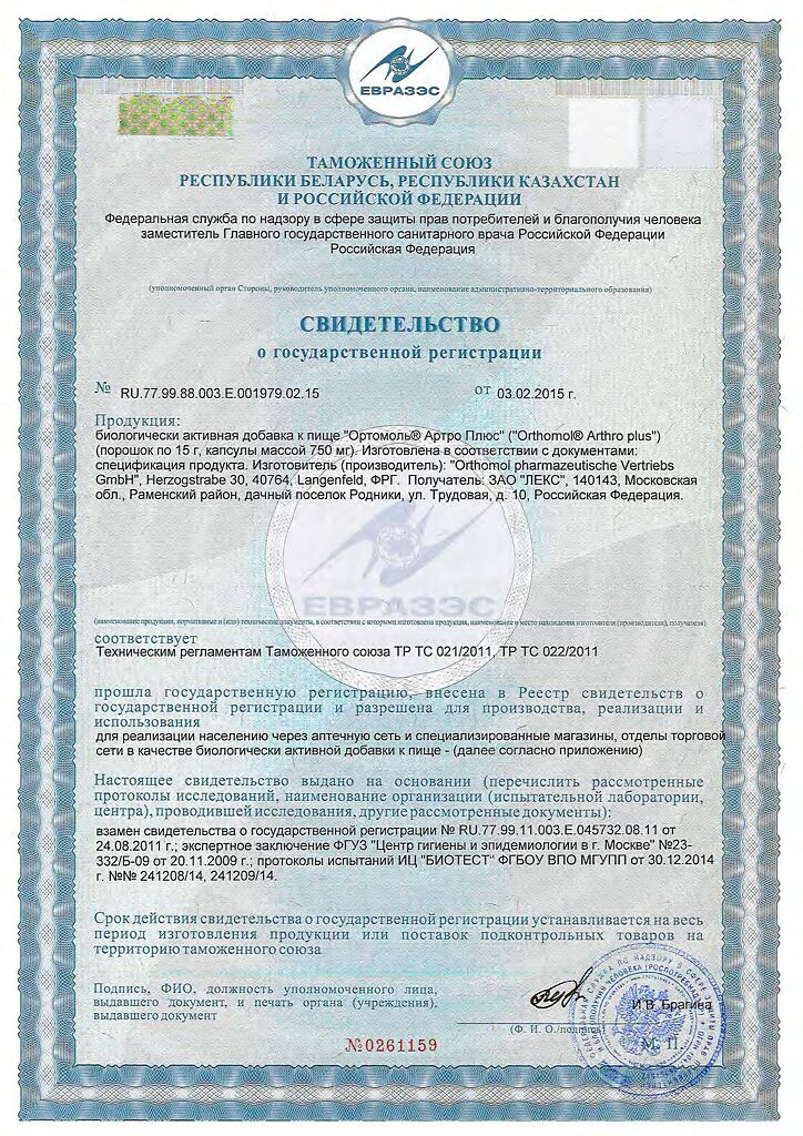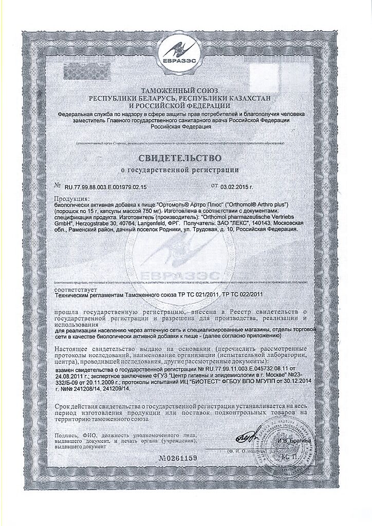 Размешайте содержимое пакетика в 100-150 мл воды или фруктового сока и принимайте во время или сразу после еды вместе с капсулами. Orthomol Arthro Plus следует принимать под наблюдением врача. Ортомол Артро Плюс не предназначен для замены другой медикаментозной терапии или назначений врача. Препарат Orthomol Arthro Plus употребляется в качестве расширенной сбалансированной диеты и не является полноценным пищевым продуктом. Ортомол Артро Плюс не является заменителем пищи.