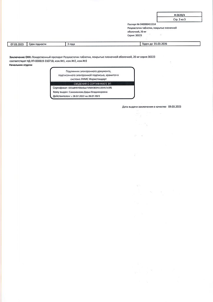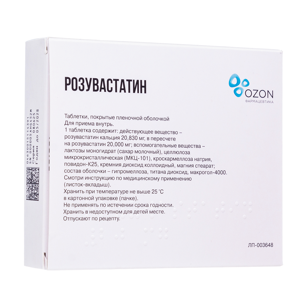 Действующее вещество:розувастатин 5 мг, 10 мг, 20 мг или 40 мг;
