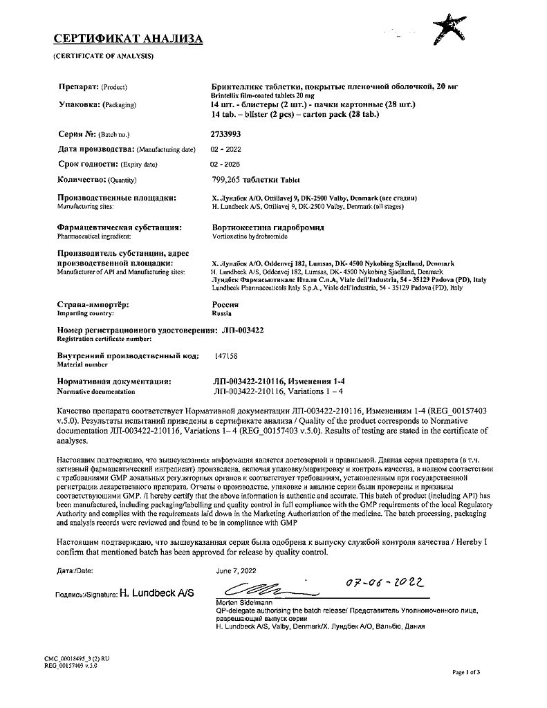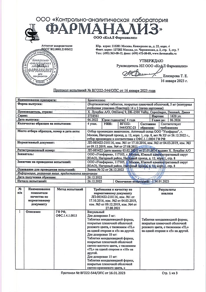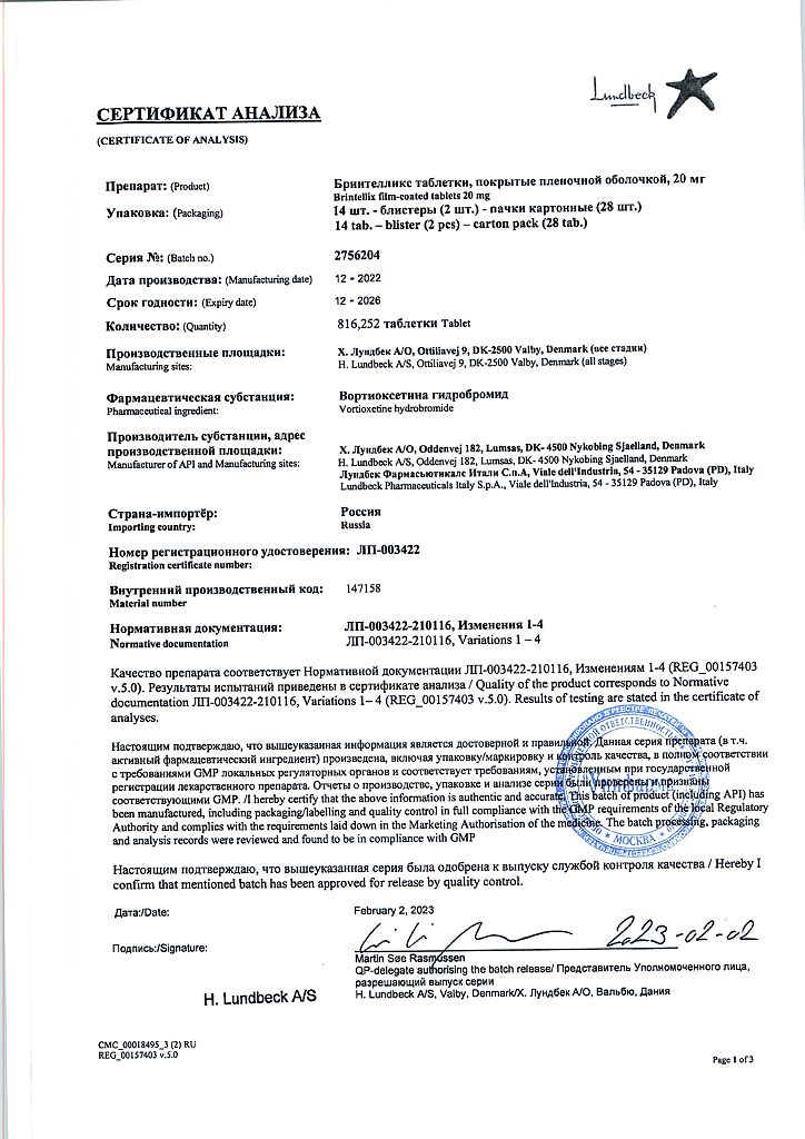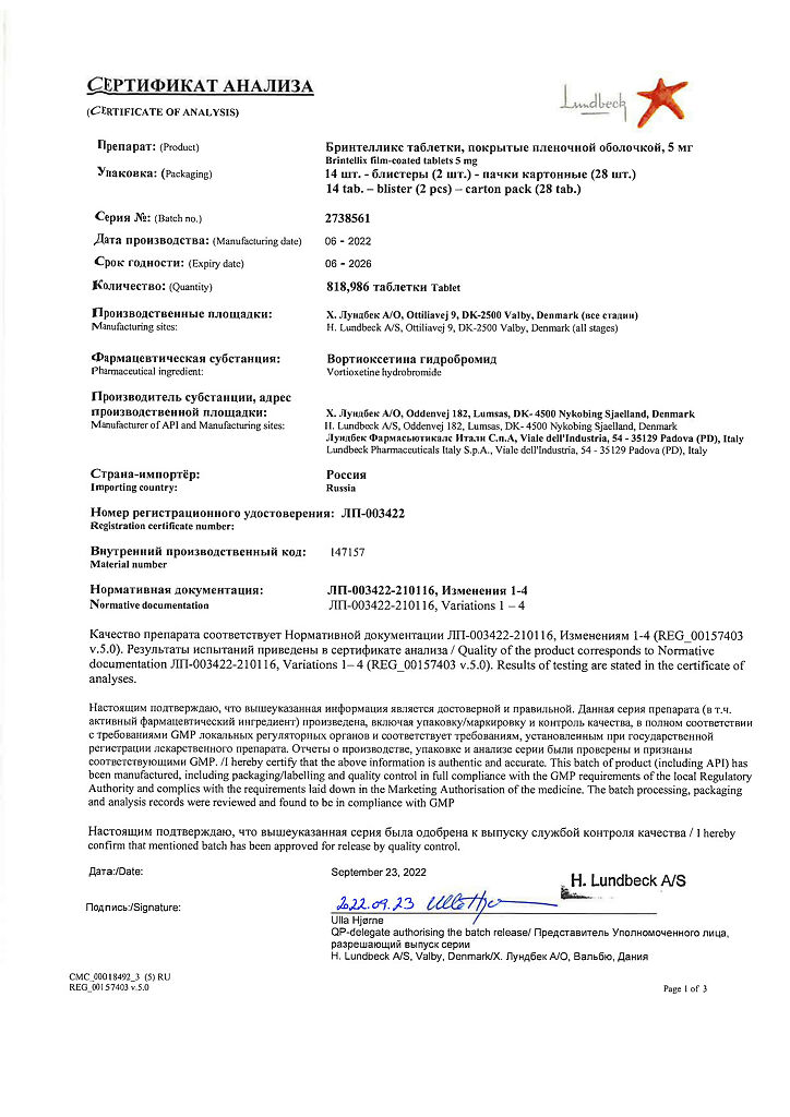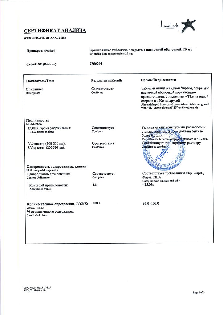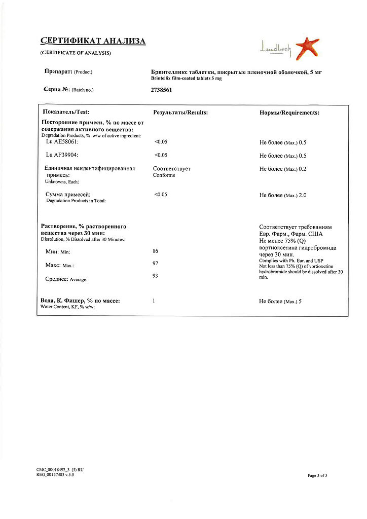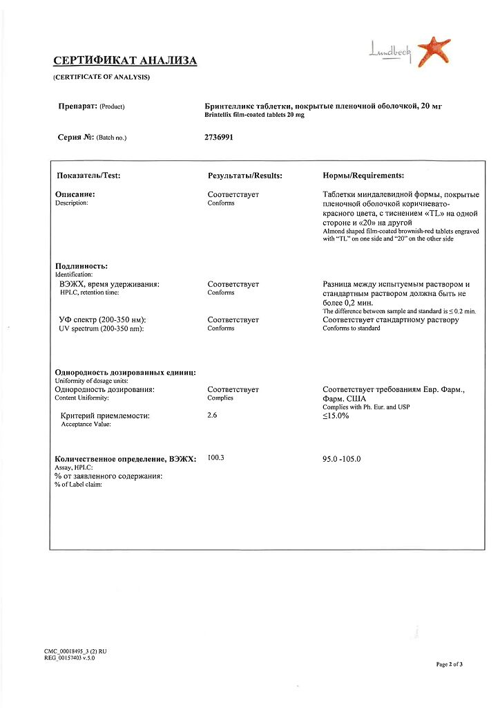 Начальная и рекомендуемая доза Бринтелликса у взрослых пациентов младше 65 лет составляет 10 мг однократно в сутки. В зависимости от индивидуальной реакции пациента суточная доза может быть увеличена до максимальной дозы 20 мг вортиоксетина один раз в сутки или снижена до минимальной дозы 5 мг вортиоксетина один раз в сутки.