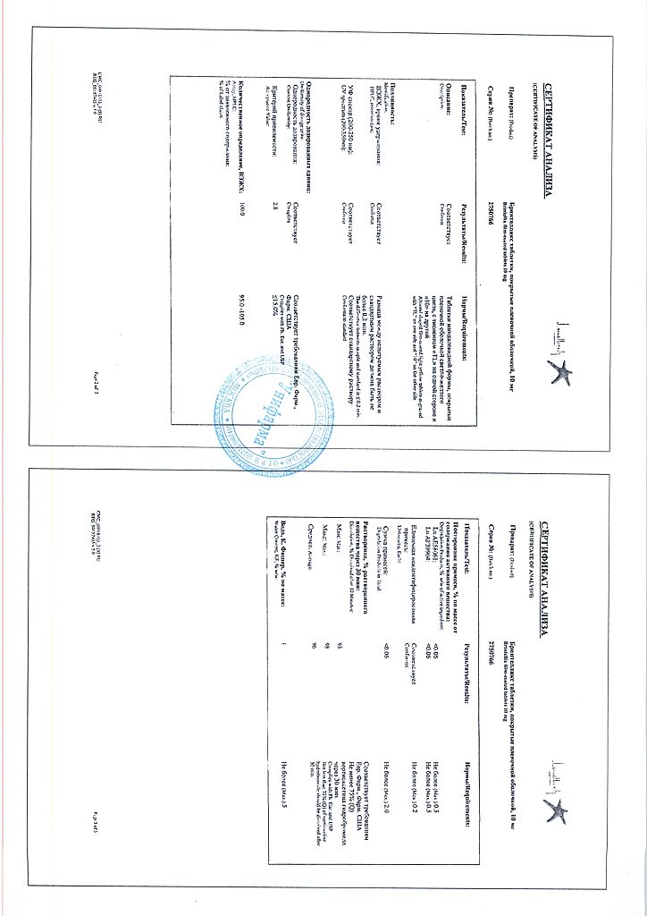 По результатам мета-анализа этих исследований отличия от плацебо были статистически значимыми: -2,3 балла (p=0,007); -3,6 балла (p<0,001); -4,6 балла (p<0,001) на дозах 5, 10 и 20 мг/сут соответственно, на дозе 15 мг/сут статистически значимые различия с плацебо не были достигнуты по данным мета-анализа, но средние различия по сравнению с плацебо составили -2,6 балла.