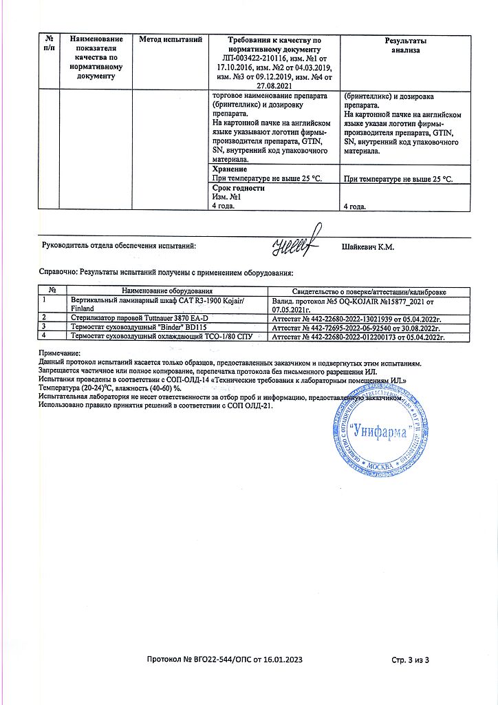 Безопасность и эффективность препарата Бринтелликс у детей и подростков в возрасте до 18 лет не установлена. Данных по этой группе пациентов нет (см. раздел «Особые указания»).