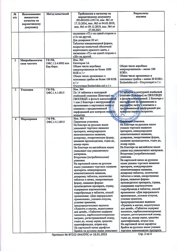 Безопасность и переносимость вортиоксетина были установлены в ходе краткосрочных и долгосрочных исследований в диапазоне доз от 5 до 20 мг/сут. Информация о нежелательных побочных реакциях представлена в разделе «Побочное действие».