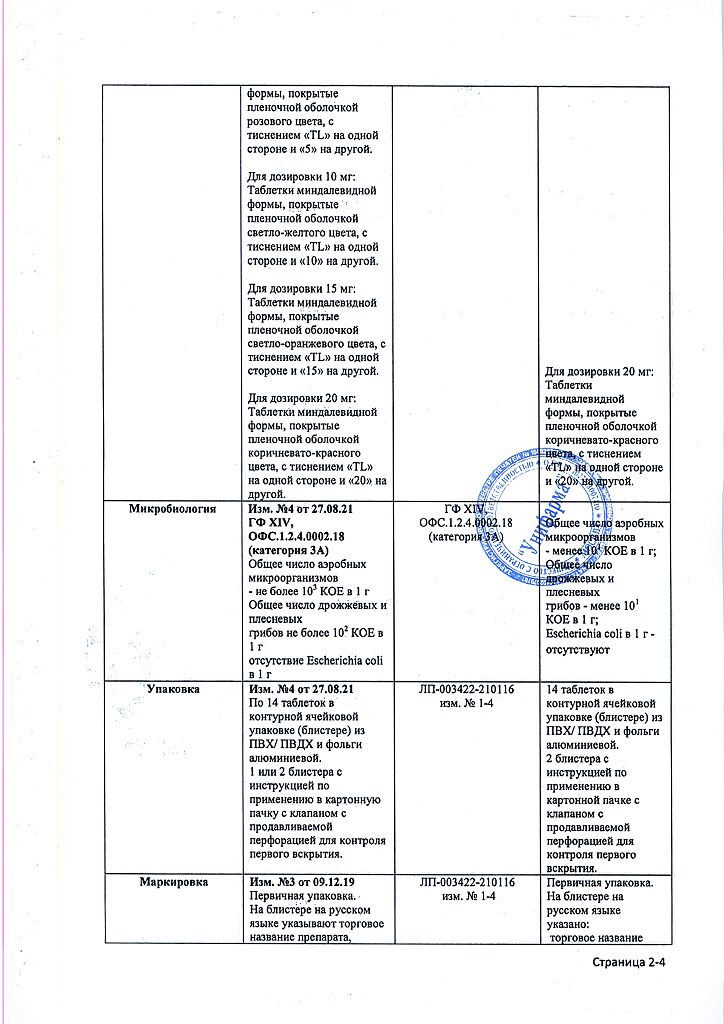 В соответствии с периодом полувыведения на основании AUCo-24ч после многократных доз 5-20 мг/сут индекс накопления составляет от 5 до 6.