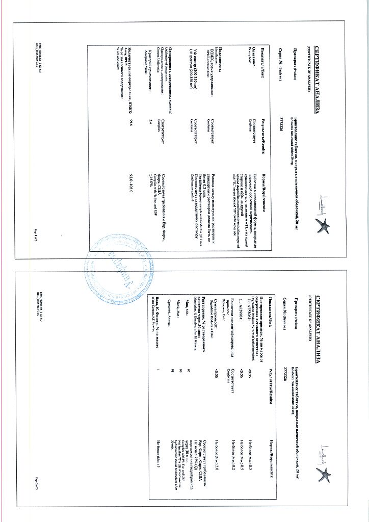 Изменения почек у крыс (гломерулонефрит, тубулярная обструкция, кристаллы в почечных канальцах) и печени у мышей и крыс (гепатоцеллюлярная гипертрофия, некроз гепатоцитов, гиперплазия желчных протоков, кристаллы в желчных протоках) наблюдались при экспозиции более чем в 2 раза (крысы) и 10 раз (мыши) превышающей человеческую в максимально рекомендованной дозе 20 мг/сут. Эти случаи были связаны главным образом со специфической для грызунов обструкцией кристаллами почечных канальцев и желчных протоков и считаются маловероятными для людей.