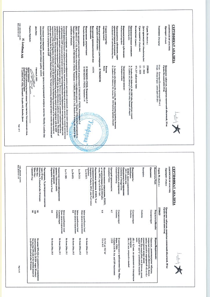 действующее вещество :эсциталопрама оксалат 6,39 мг, 12,77 мг и 25,54 мг (эквивалентно 5, 10 или 20 мг эсциталопрама соответственно),