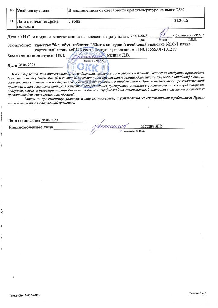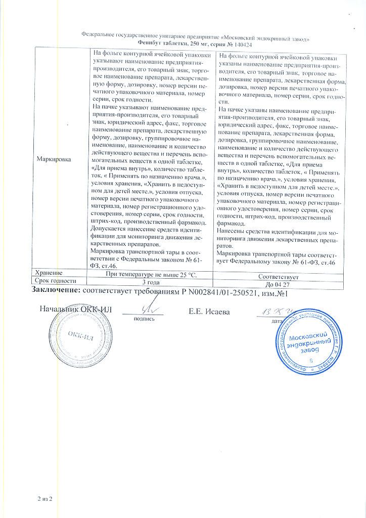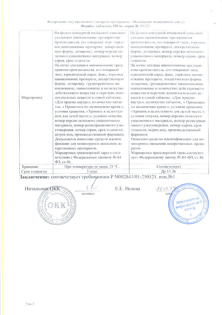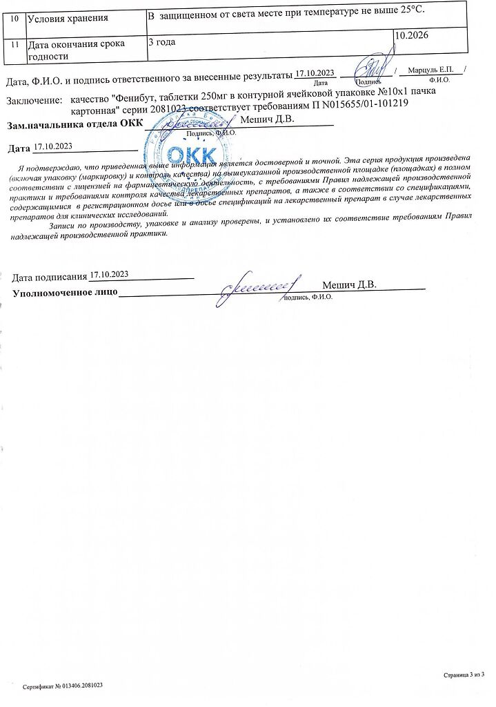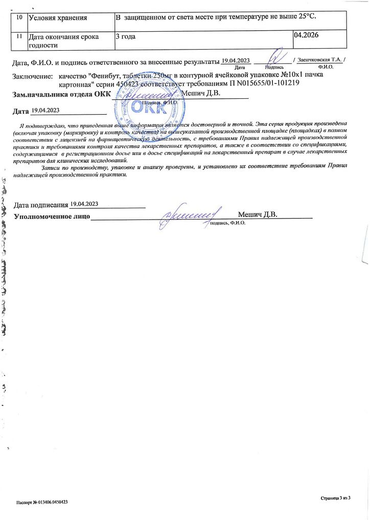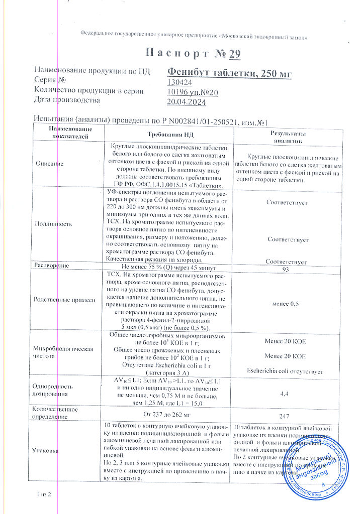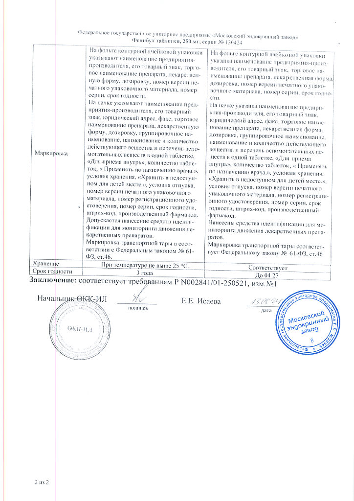 действующее вещество: γ-амино-β-фенилбутировой кислоты гидрохлорид 250 мг;