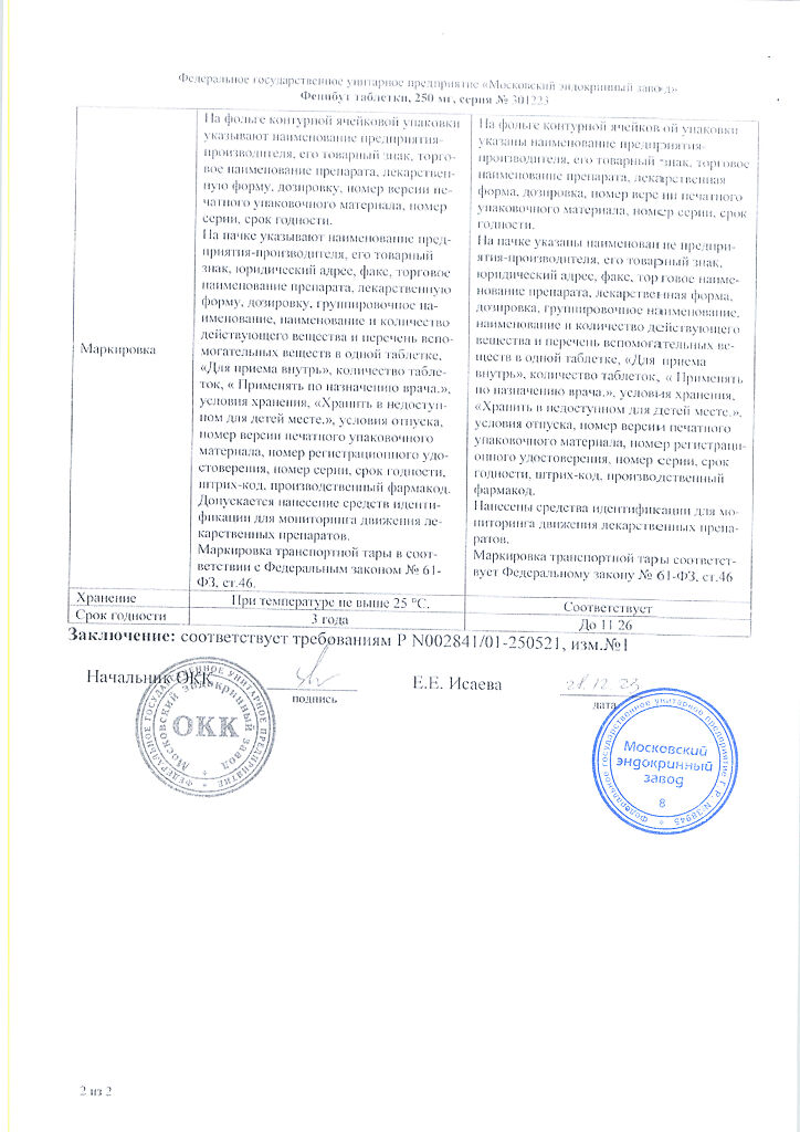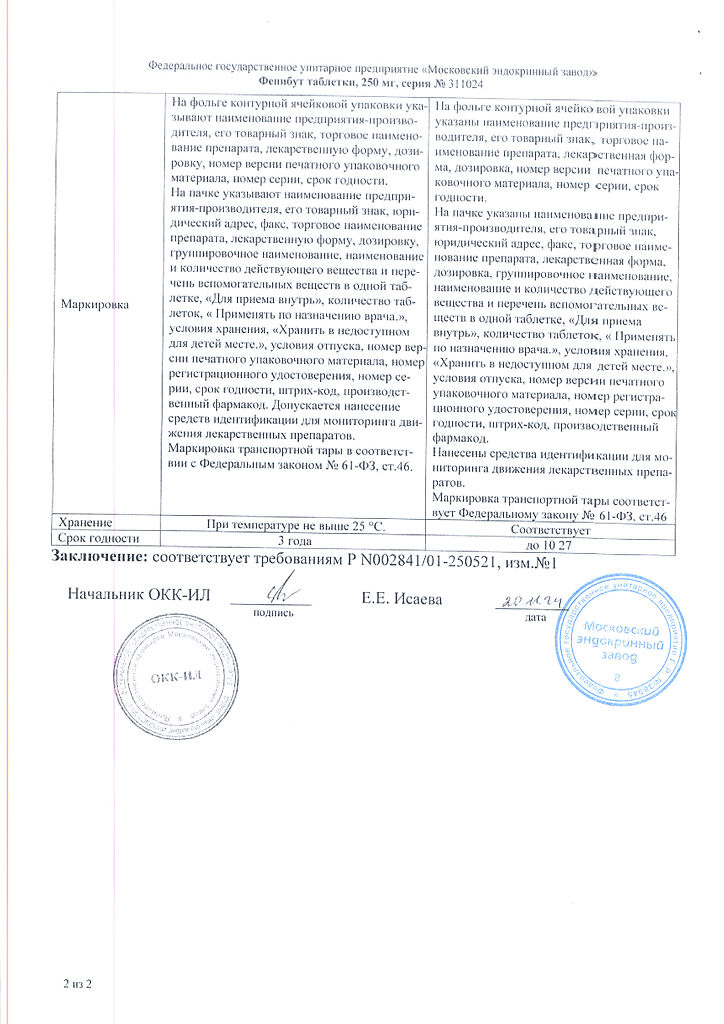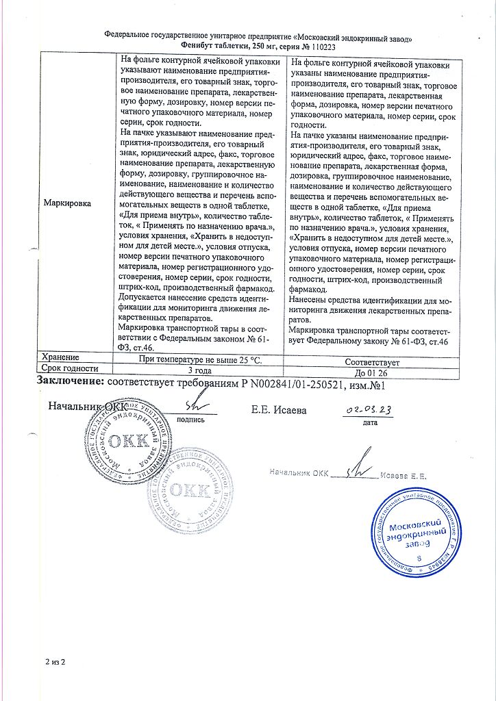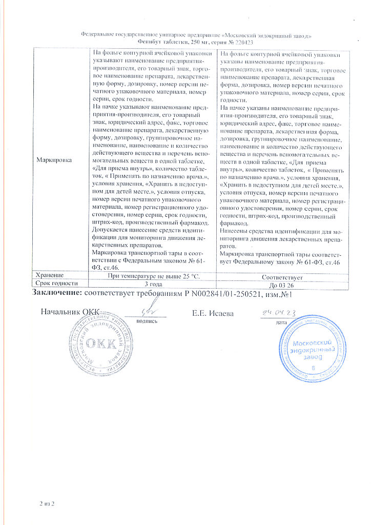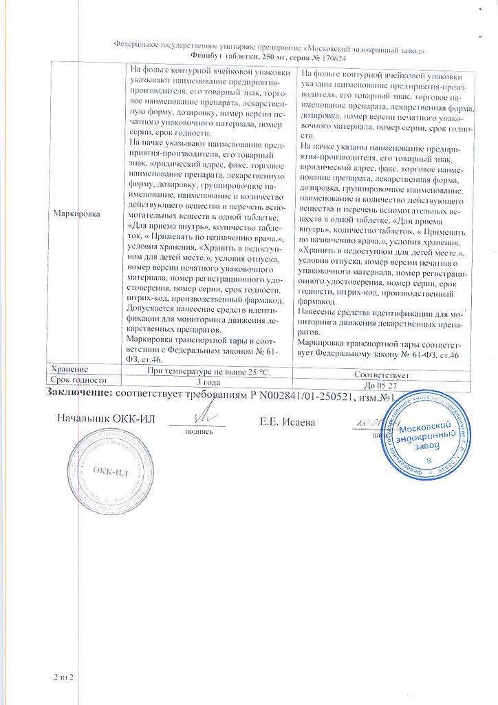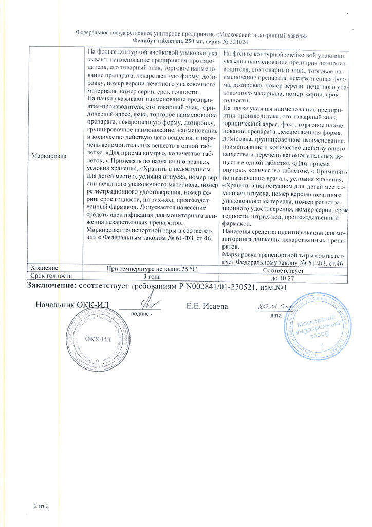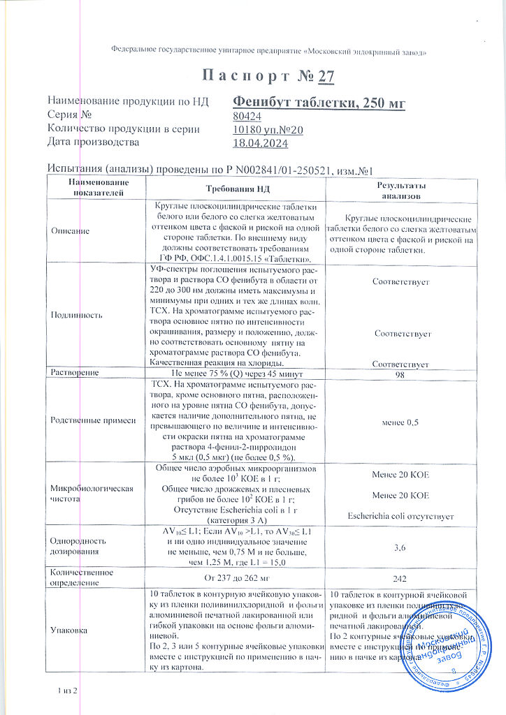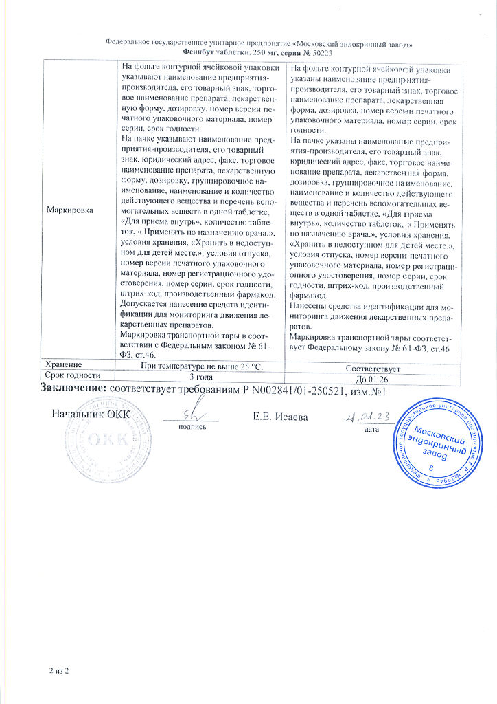 действующее вещество: γ-амино-β-фенилбутировой кислоты гидрохлорид 250 мг;