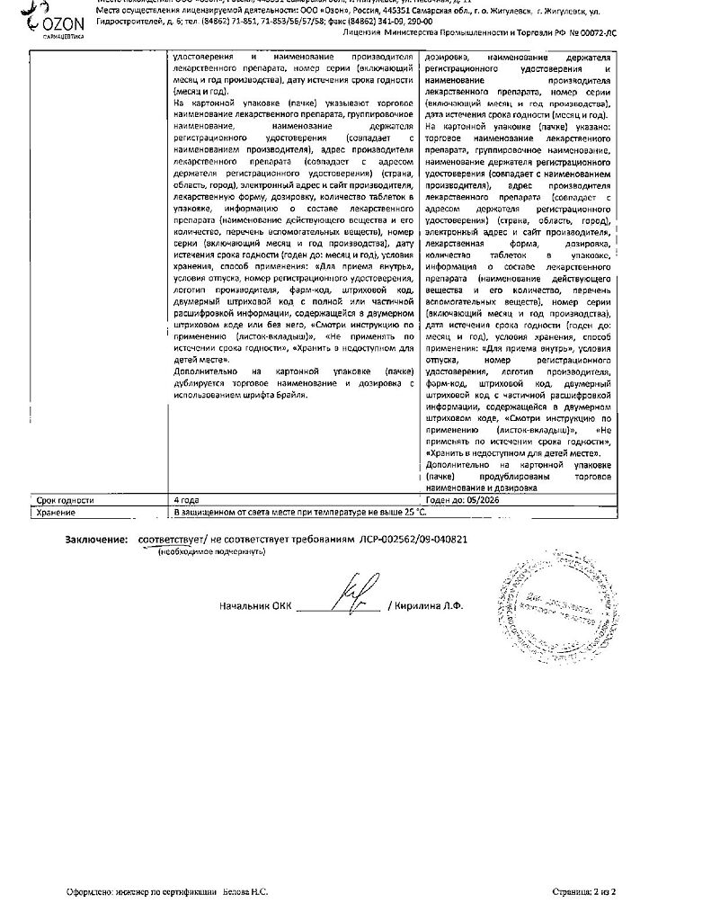в упаковке 10, 20, 30, 40 или 50 таблеток.