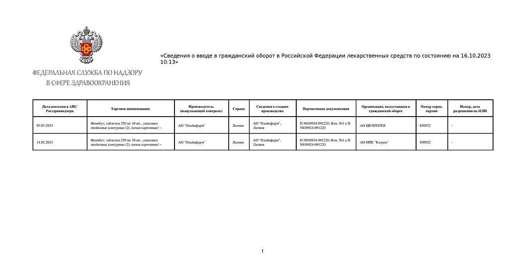 Страница носит информационный характер о наличии препаратов. Перед назначением и применением проконсультируйтесь с врачом