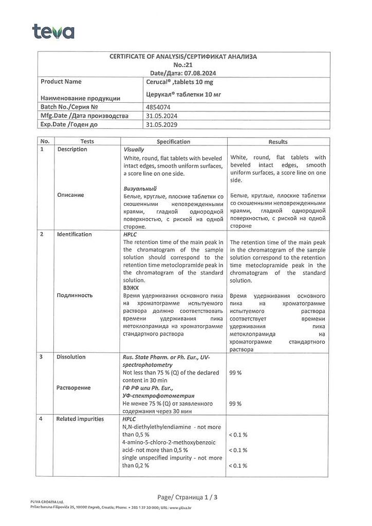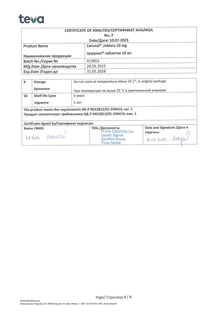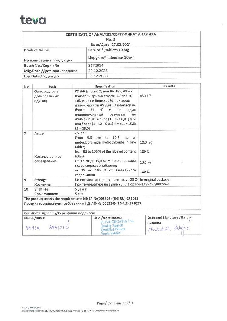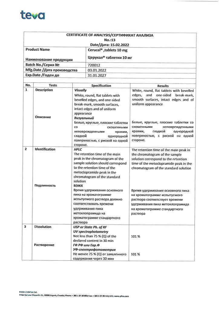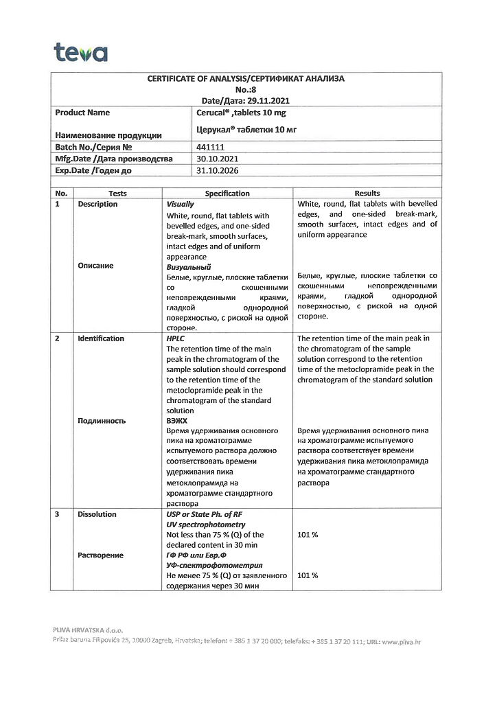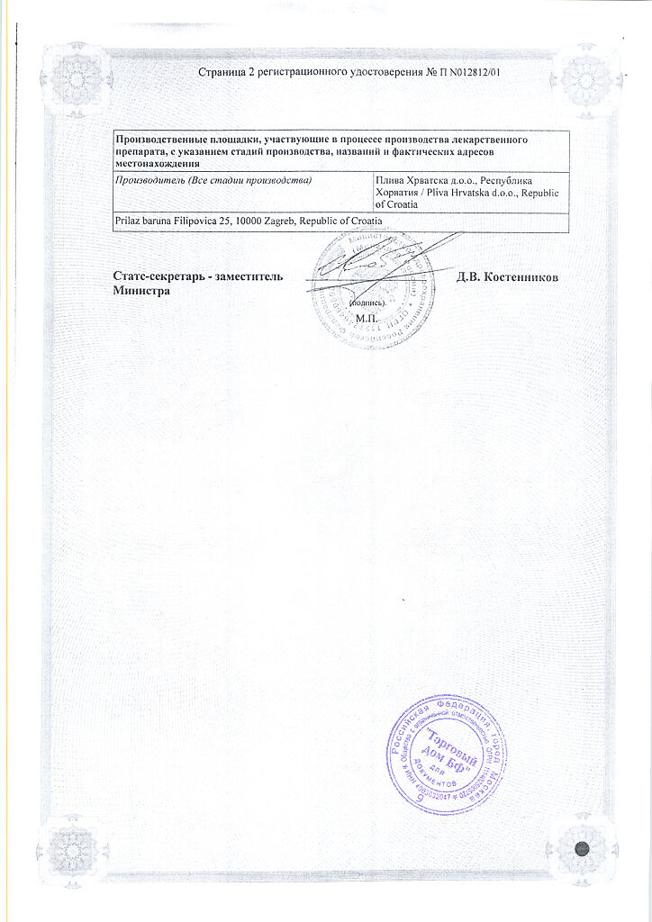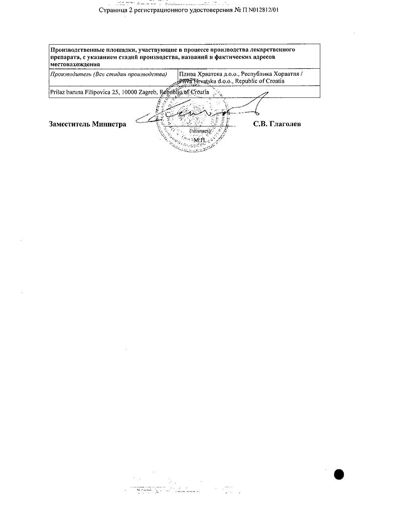 Производитель: Плива Хрватска д.о.о., Хорватия
