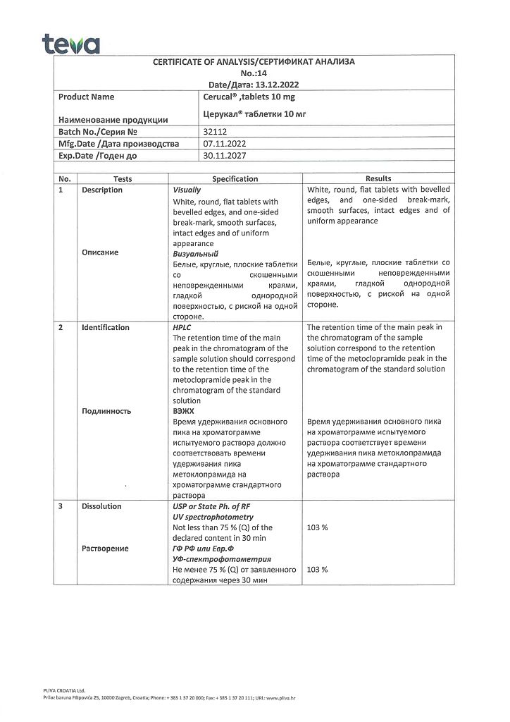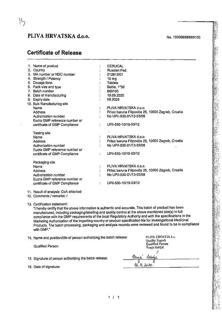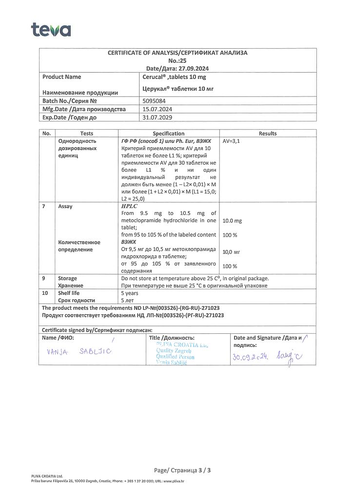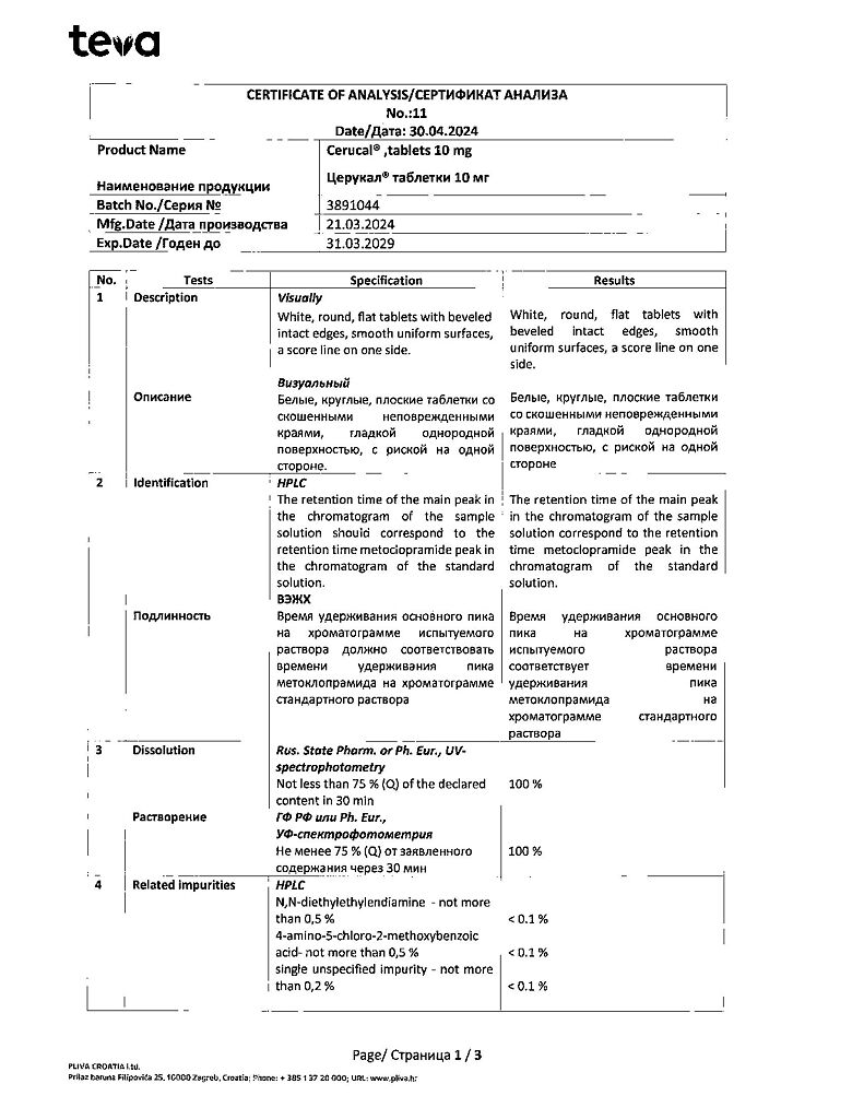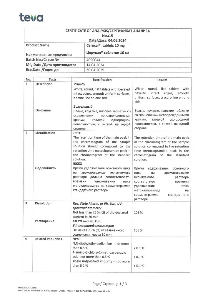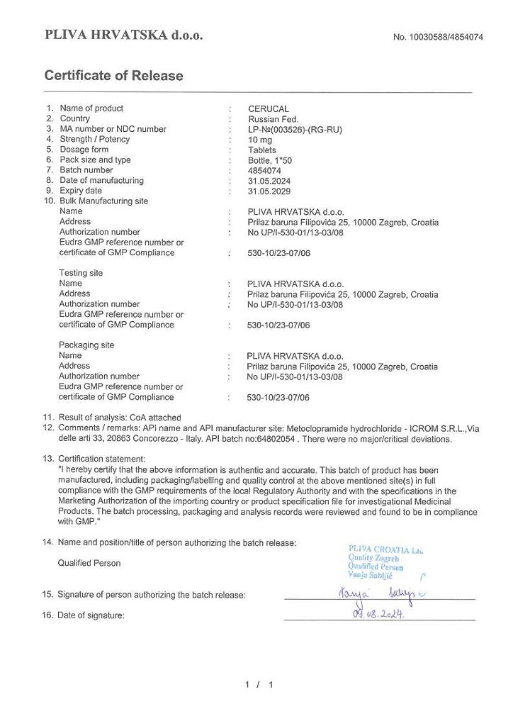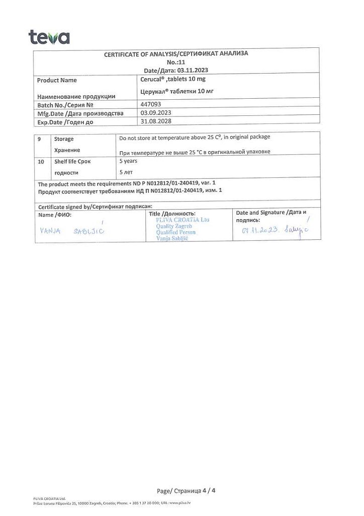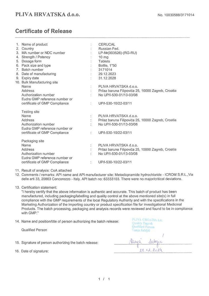 Производитель: Плива Хрватска д.о.о., Хорватия