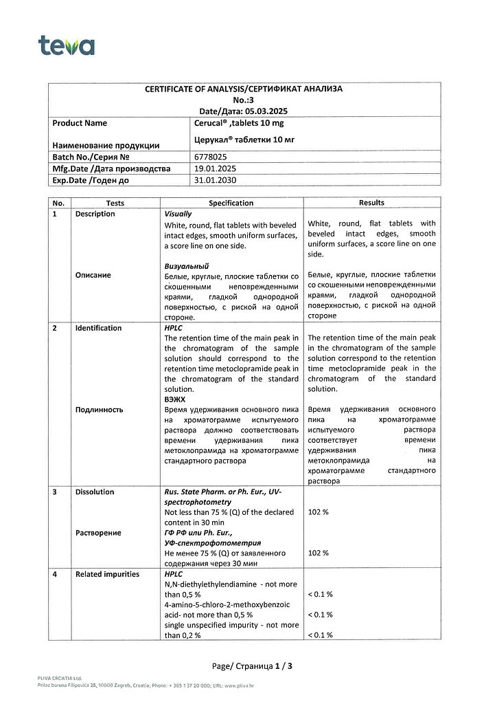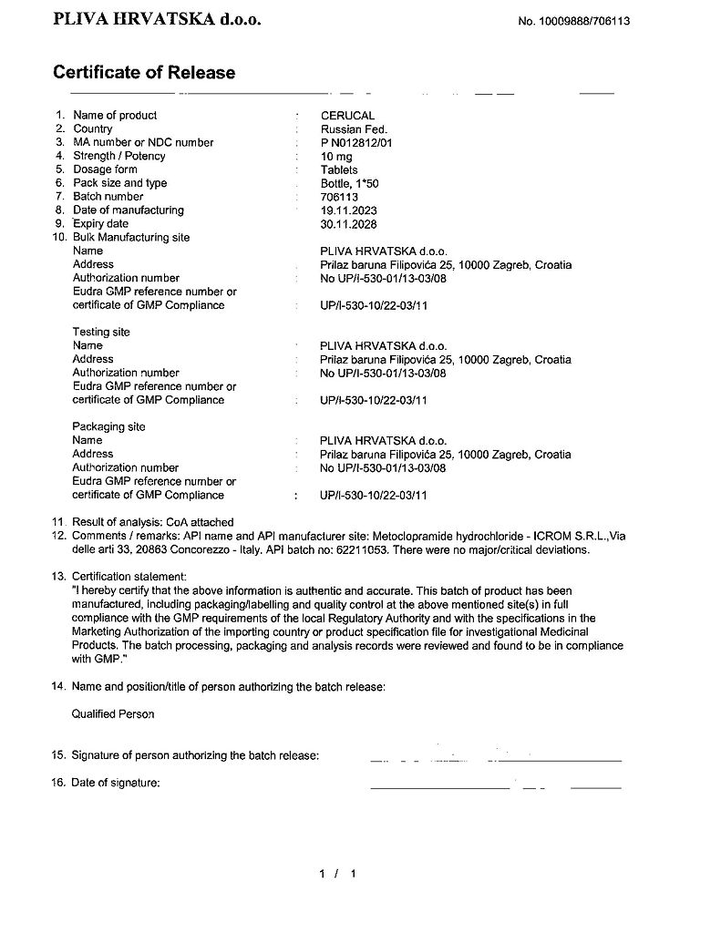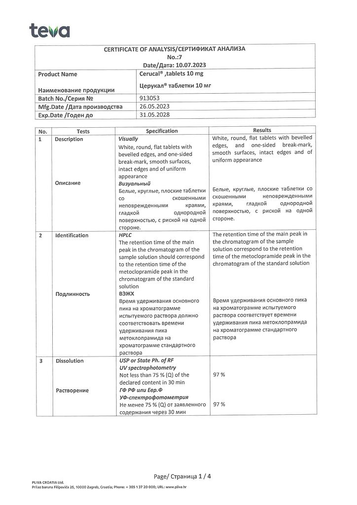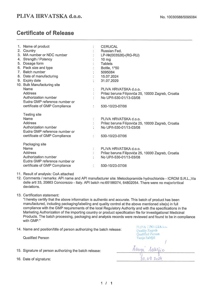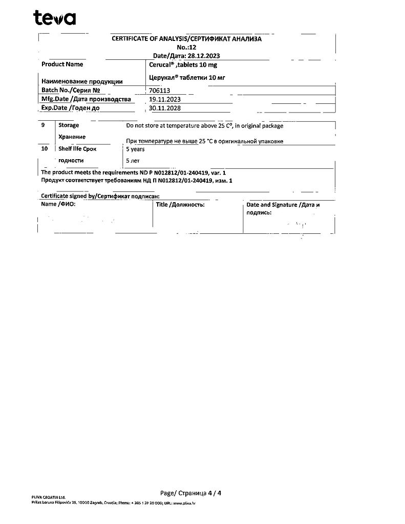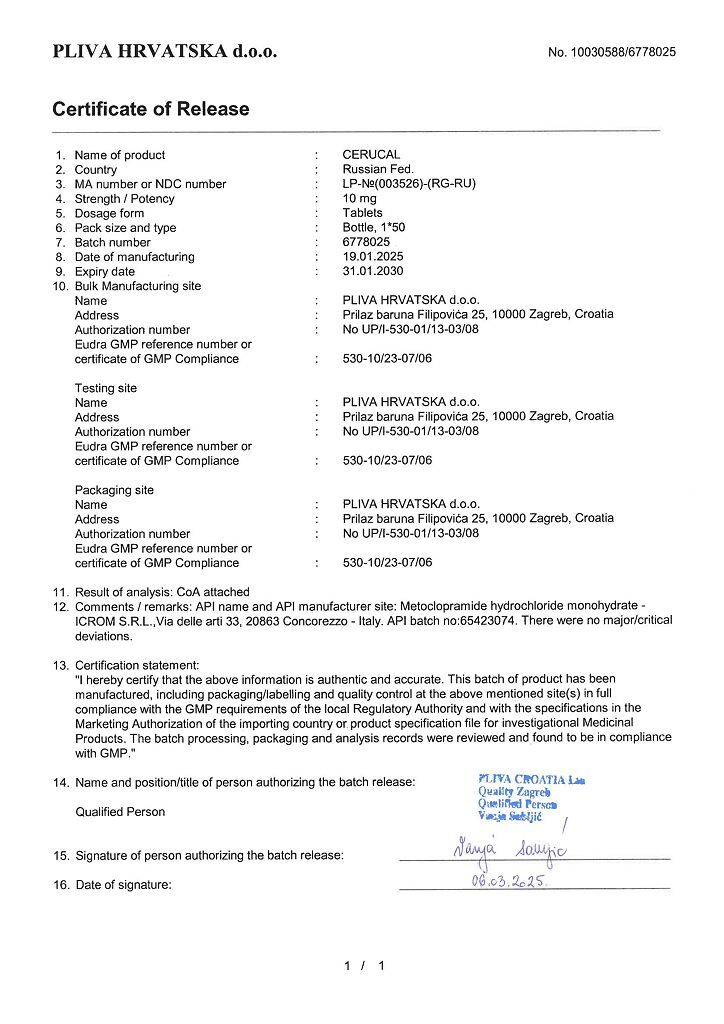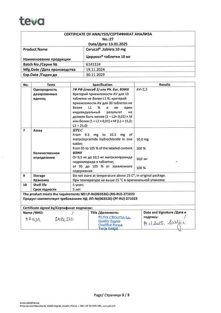 Производитель: Плива Хрватска д.о.о., Хорватия