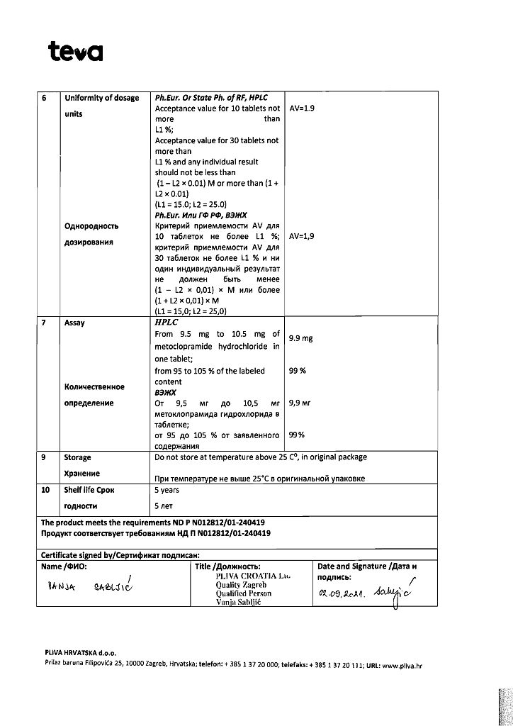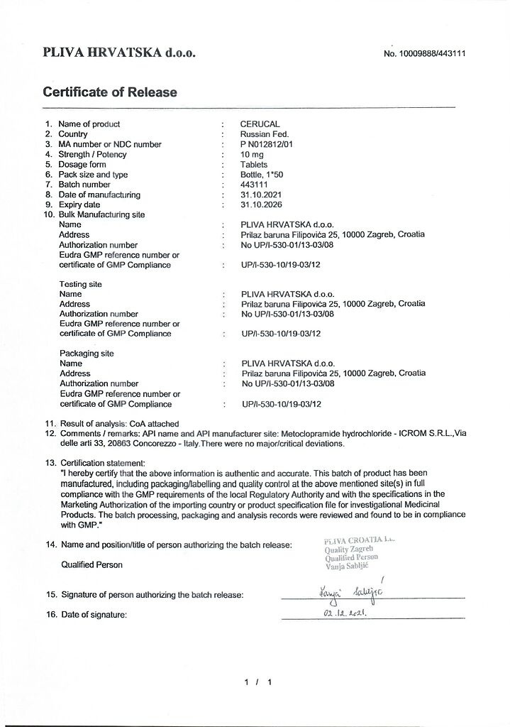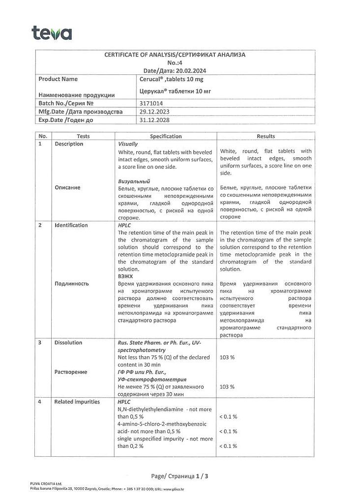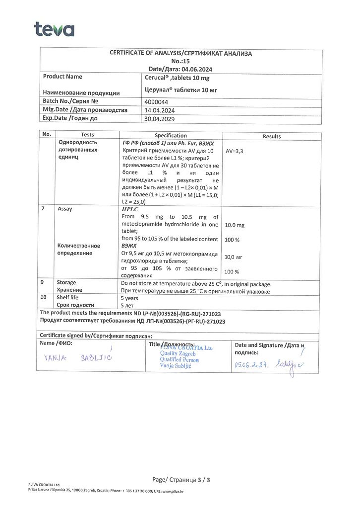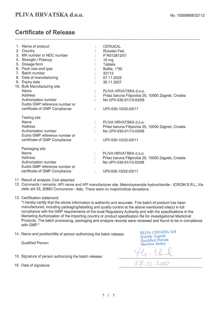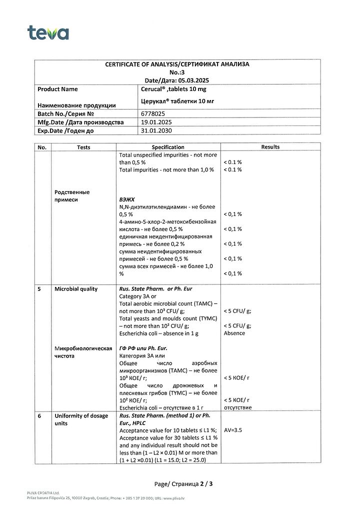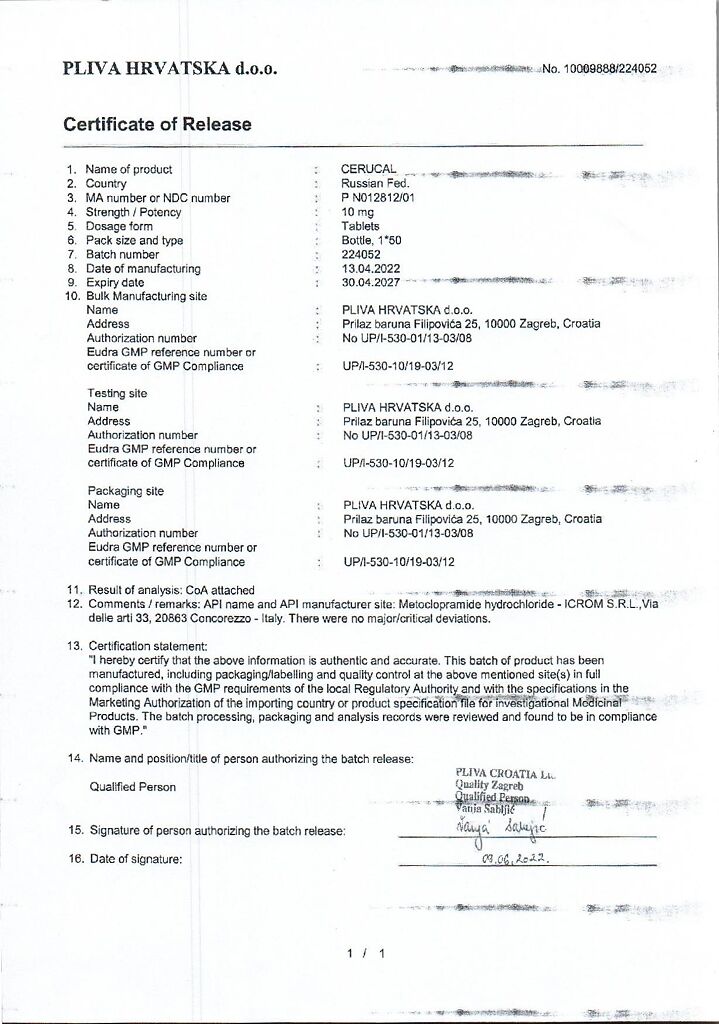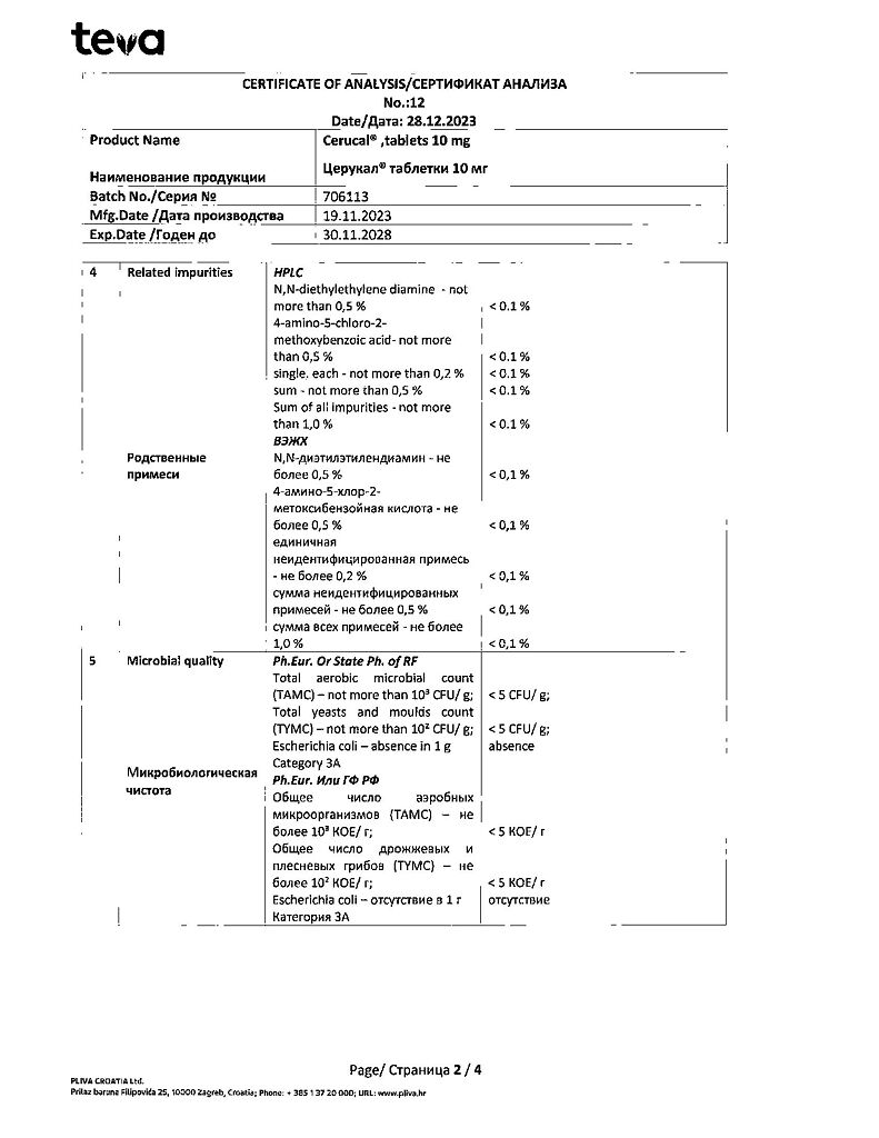 Производитель: Плива Хрватска д.о.о., Хорватия