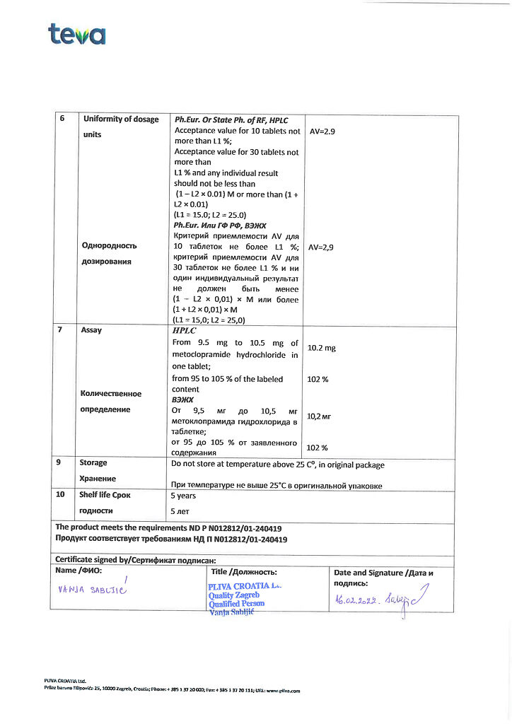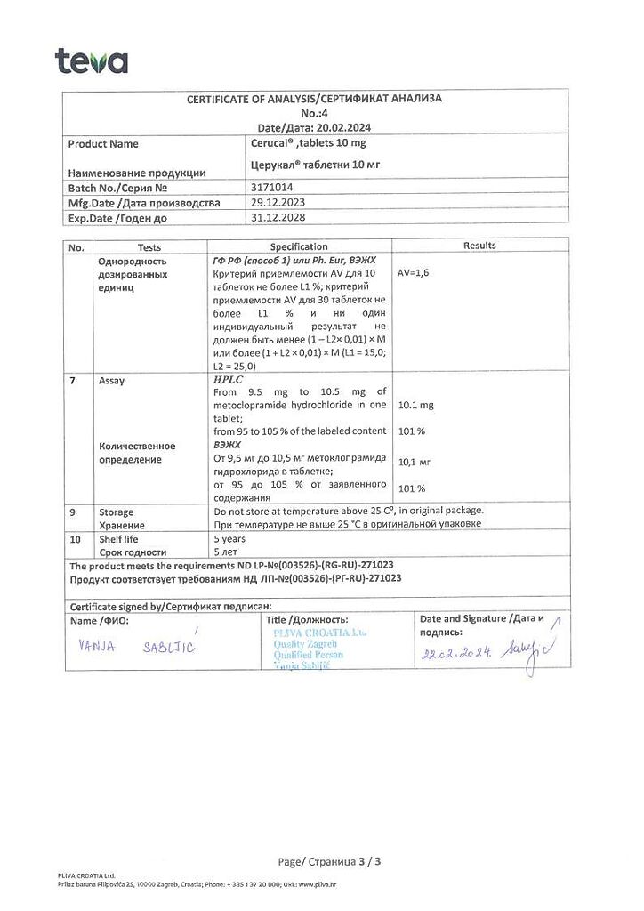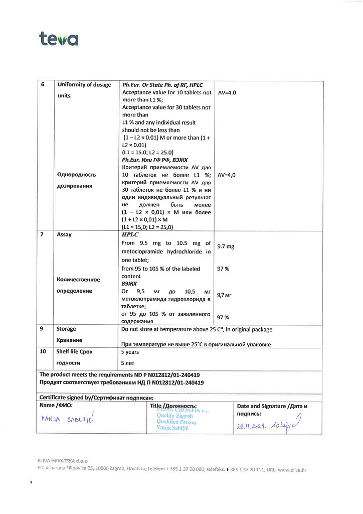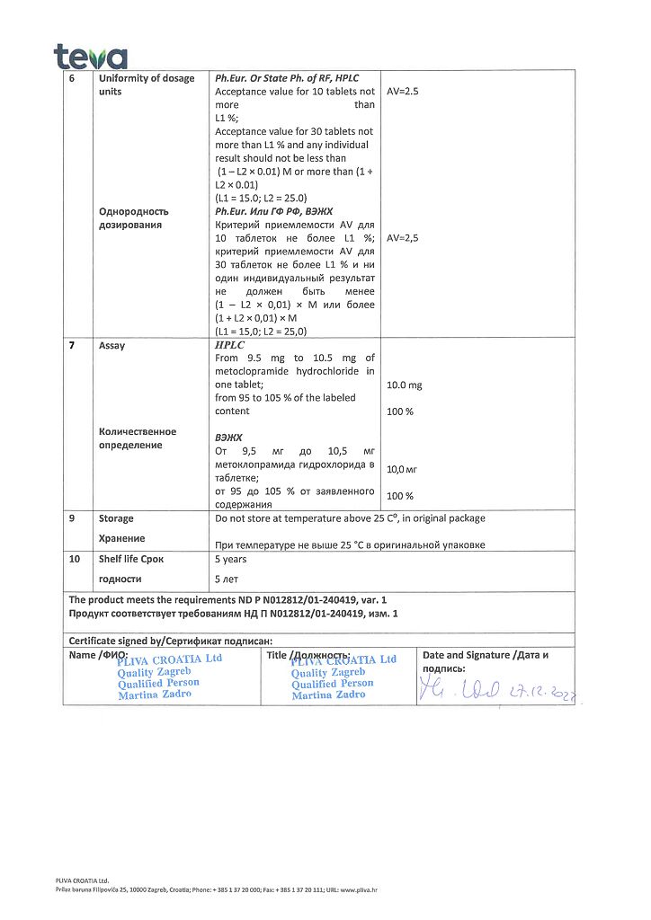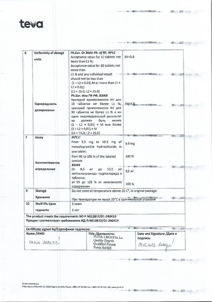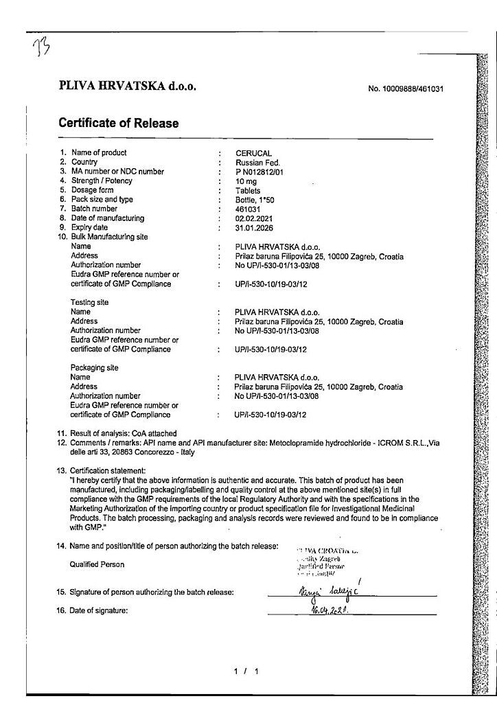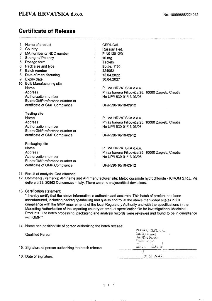 Производитель: Плива Хрватска д.о.о., Хорватия