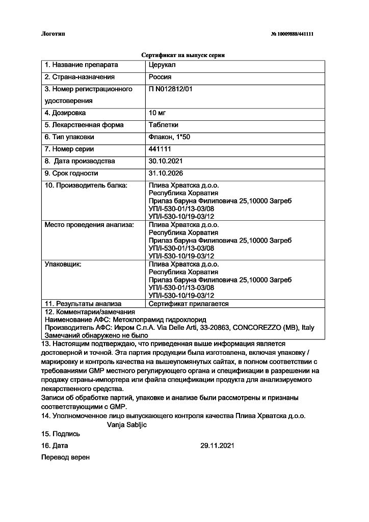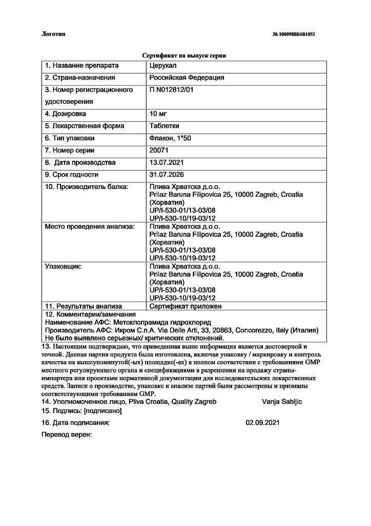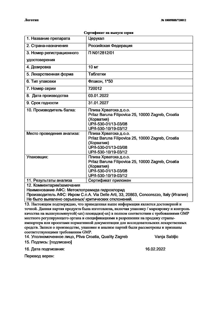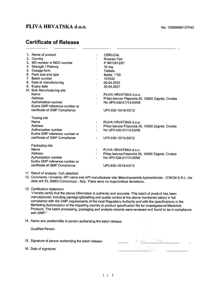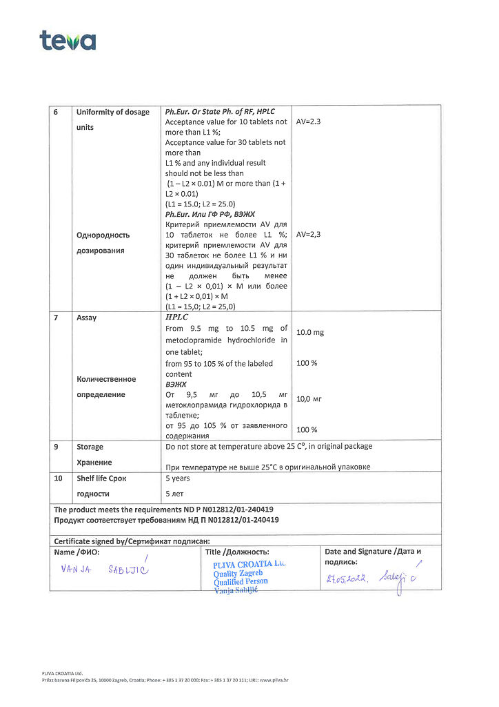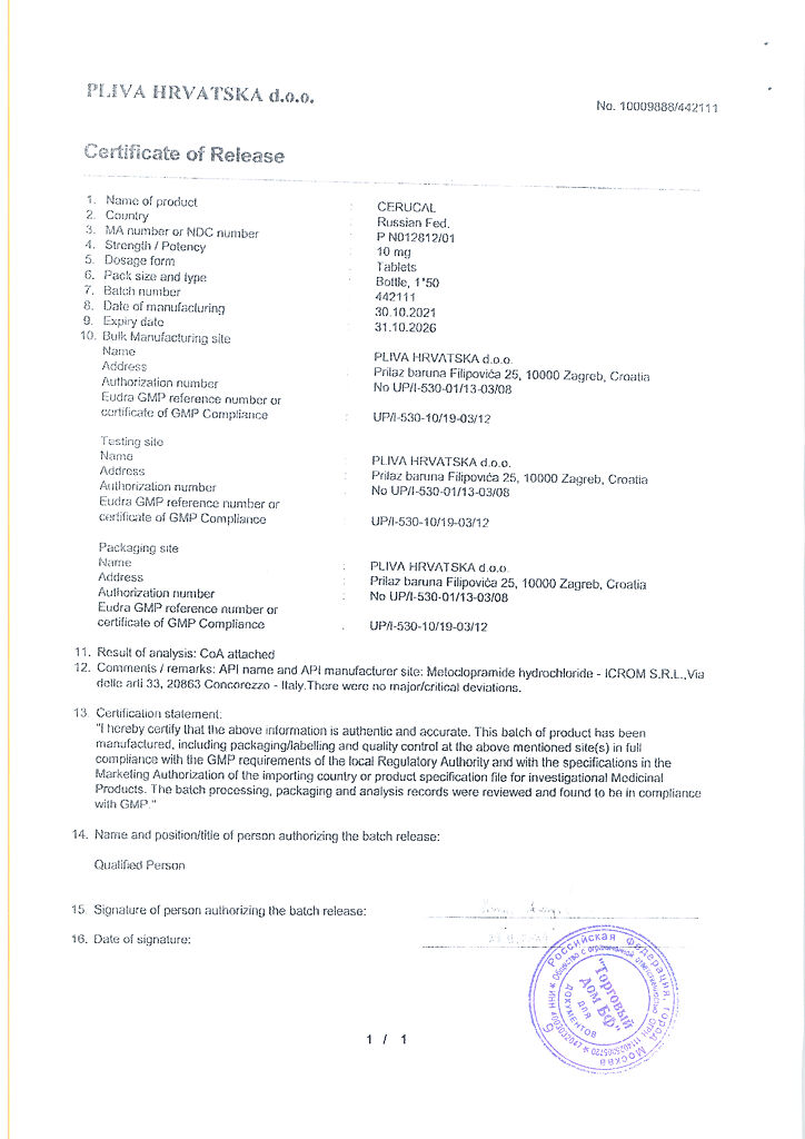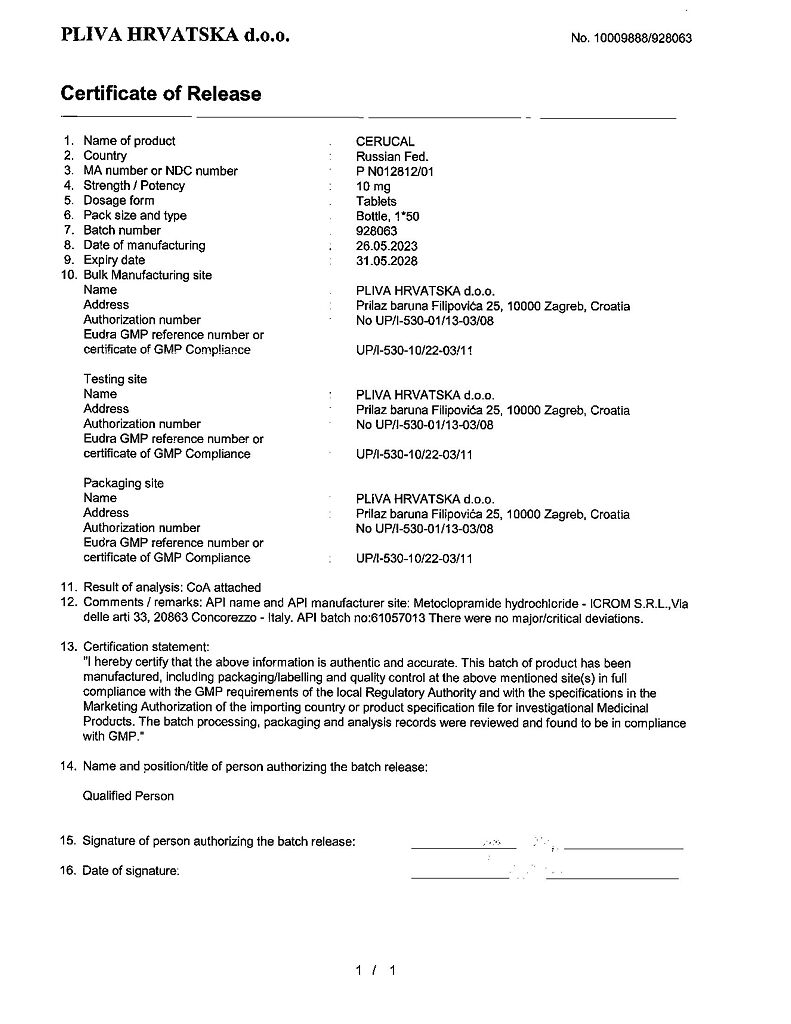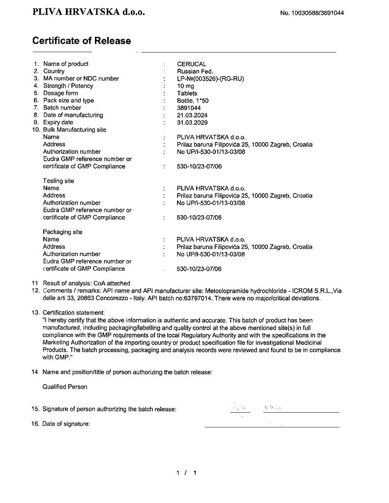 Производитель: Плива Хрватска д.о.о., Хорватия