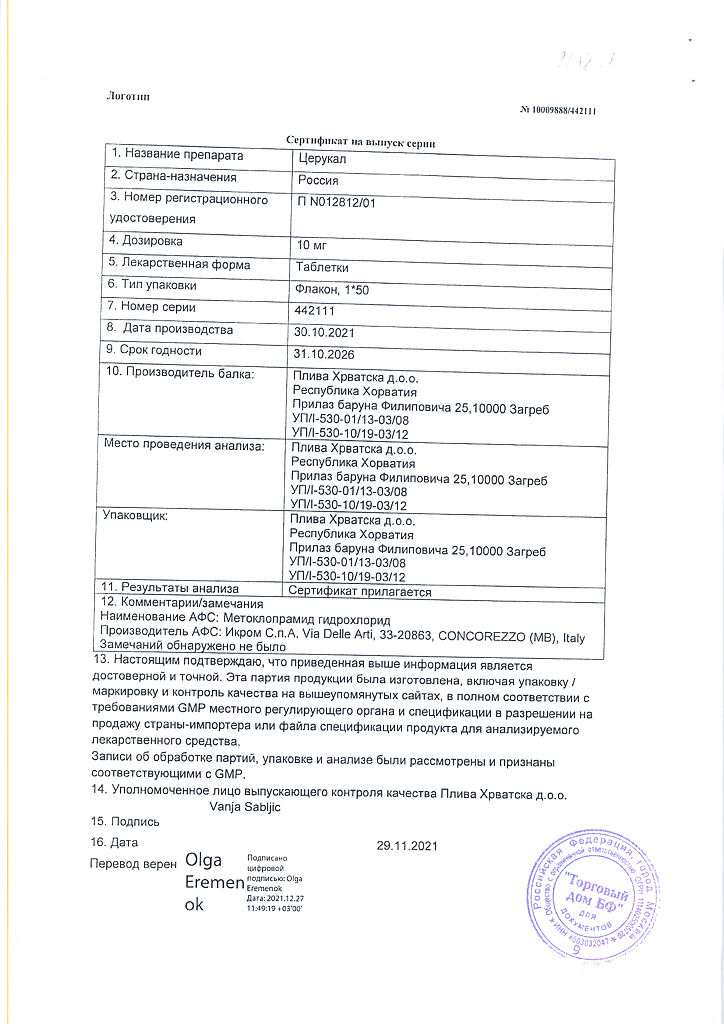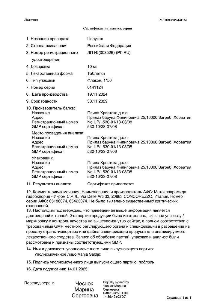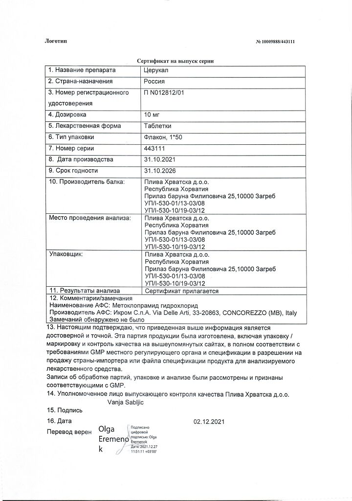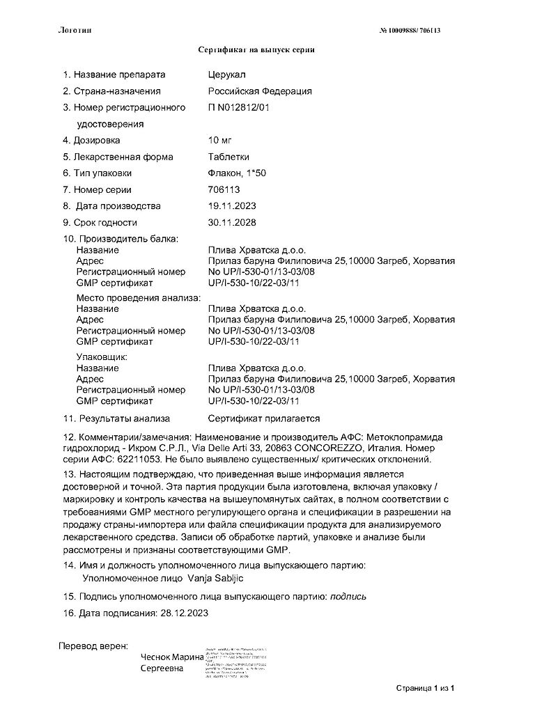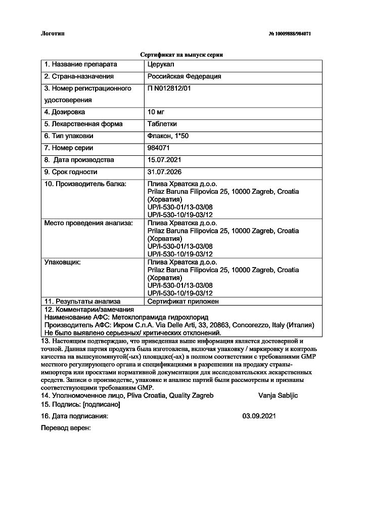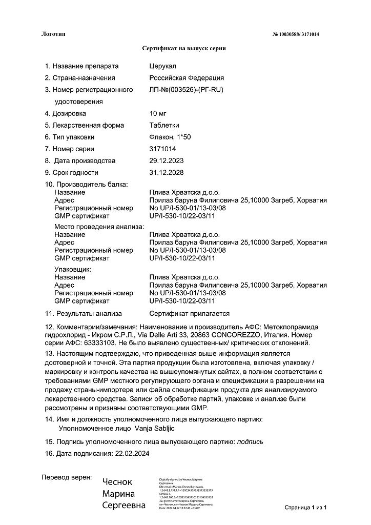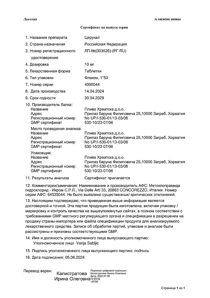 Производитель: Плива Хрватска д.о.о., Хорватия