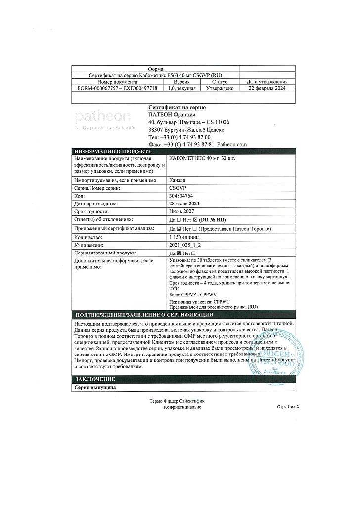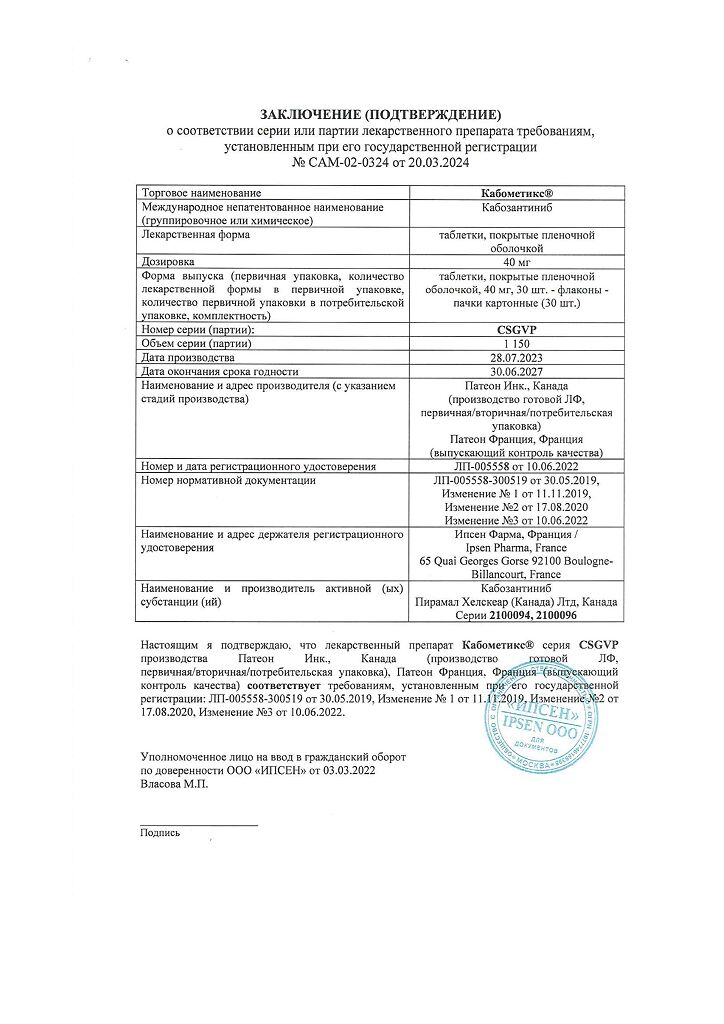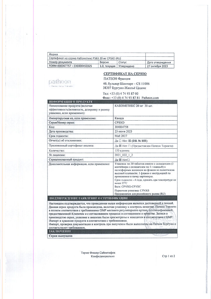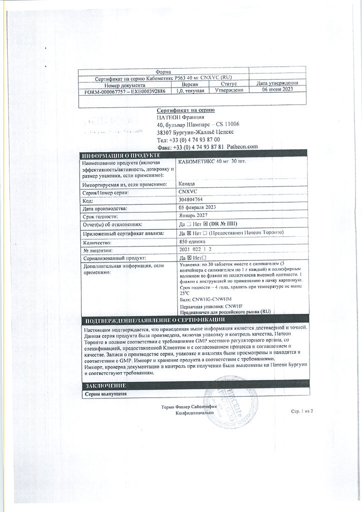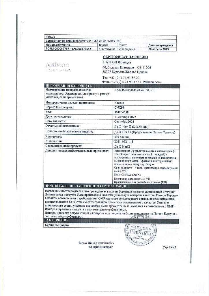 Терапия препаратом Кабометикс® должна проводиться врачом, имеющим опыт применения противоопухолевых лекарственных препаратов.