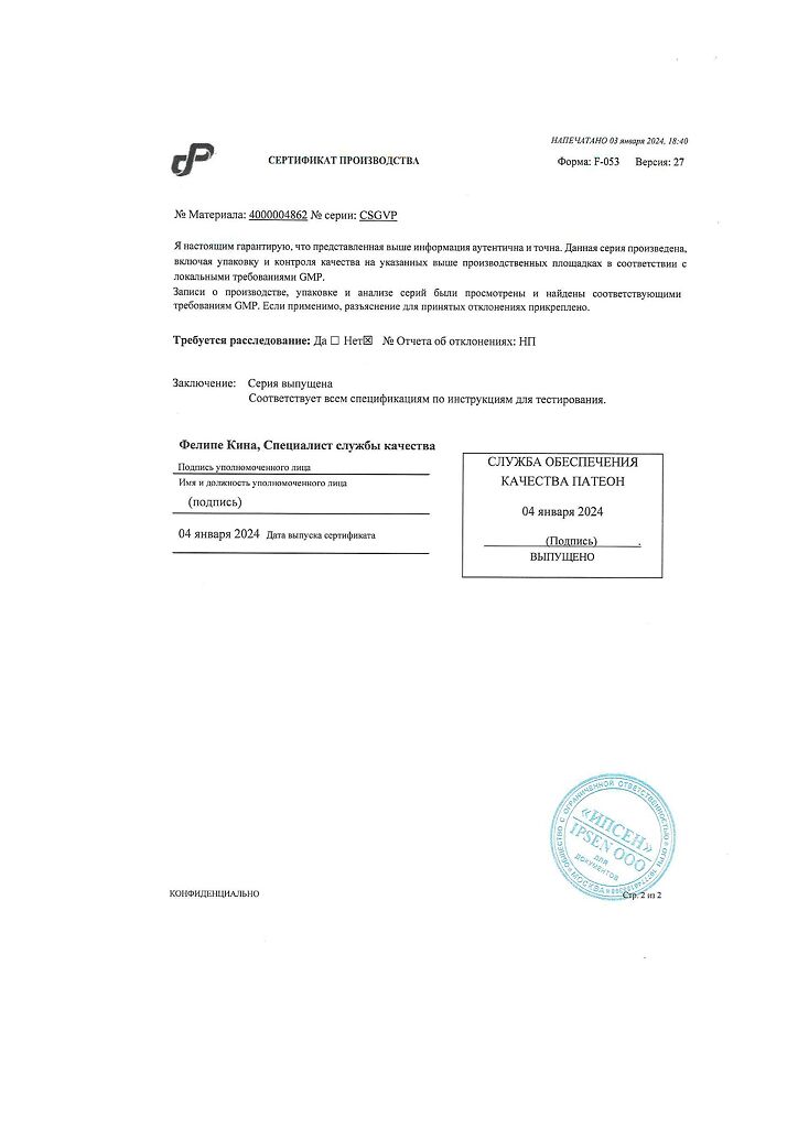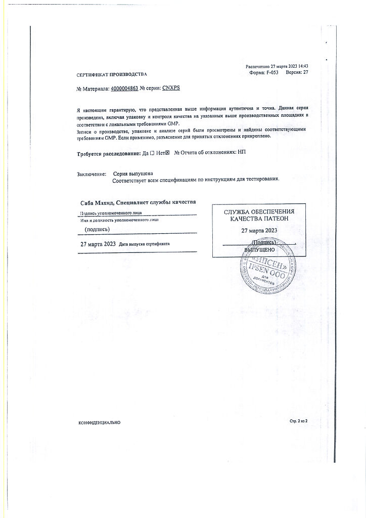 Снижение дозы дважды потребовалось у 19,3% пациентов. Среднее время до первого снижения дозы составляло 55 дней, а до временного прекращения терапии – 38 дней.