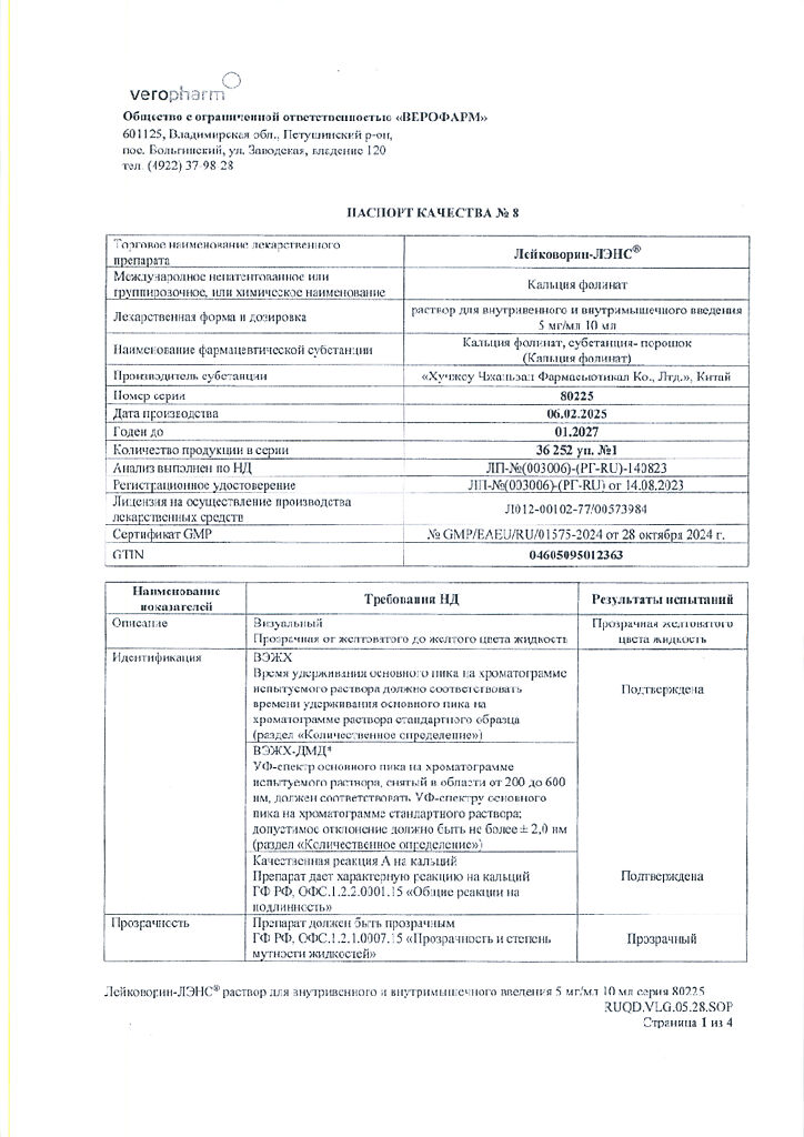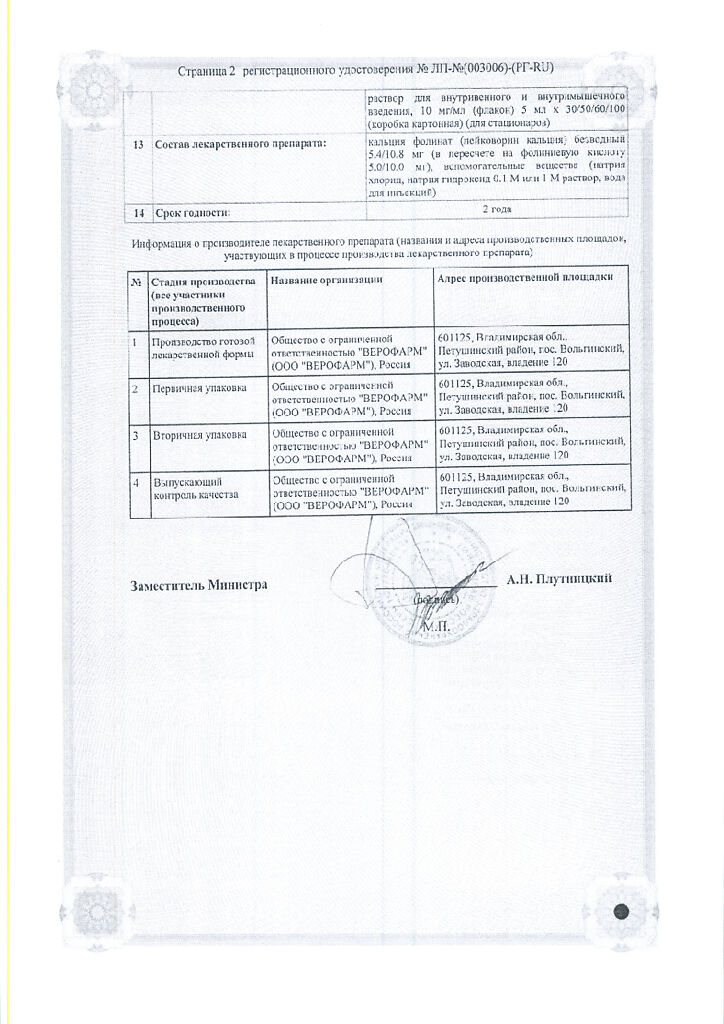 Антидот антагонистов фолиевой кислоты (фолиниевая кислота является активным производным фолиевой кислоты). Уменьшает терапевтическое и токсическое действие антагонистов фолиевой кислоты (например, метотрексата), способствует восстановлению биосинтеза нуклеиновых кислот и восполняет дефицит фолиевой кислоты в организме.