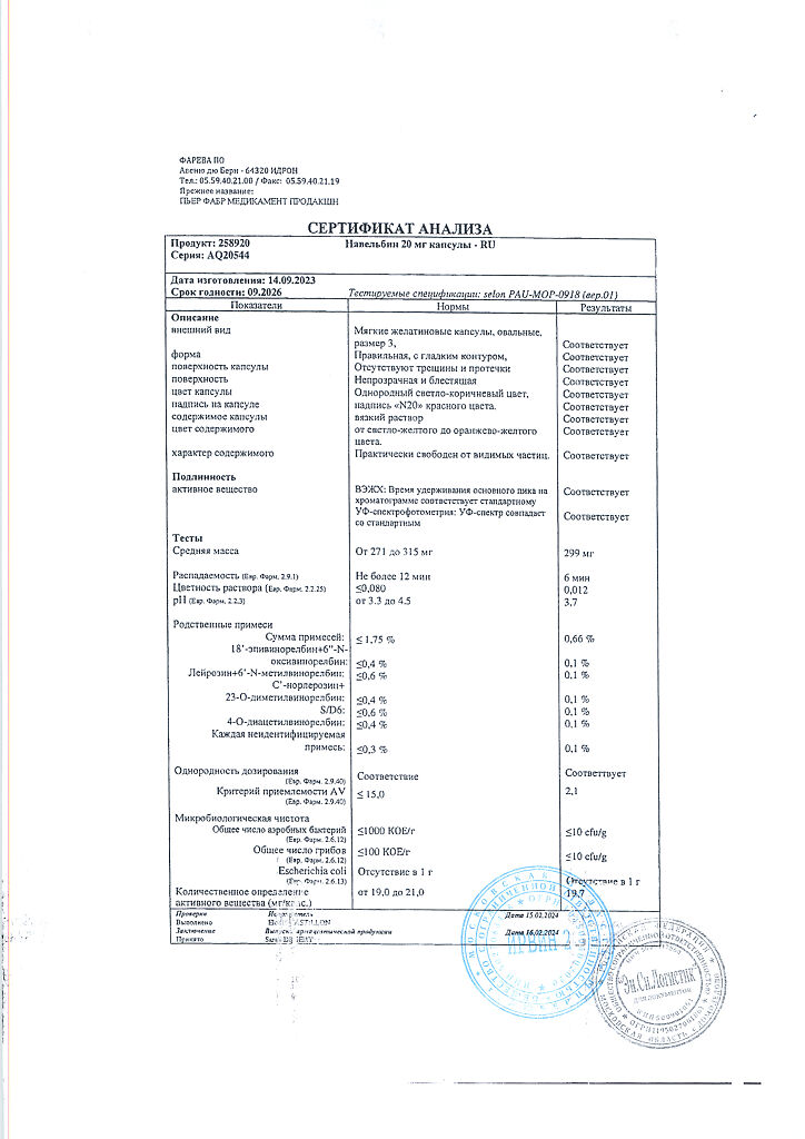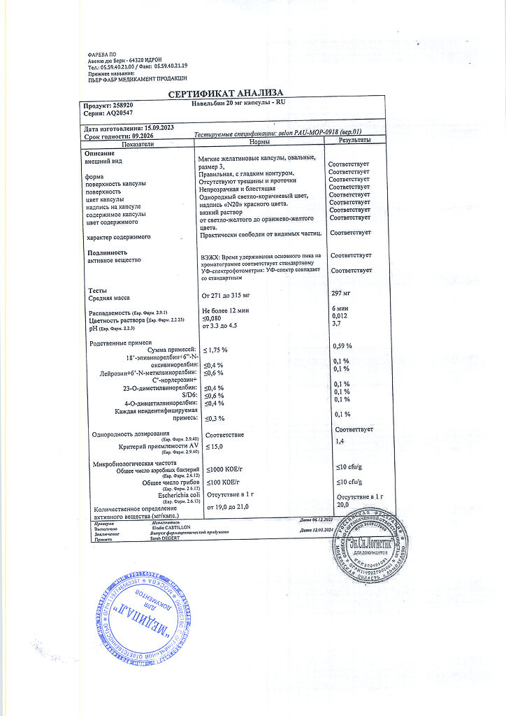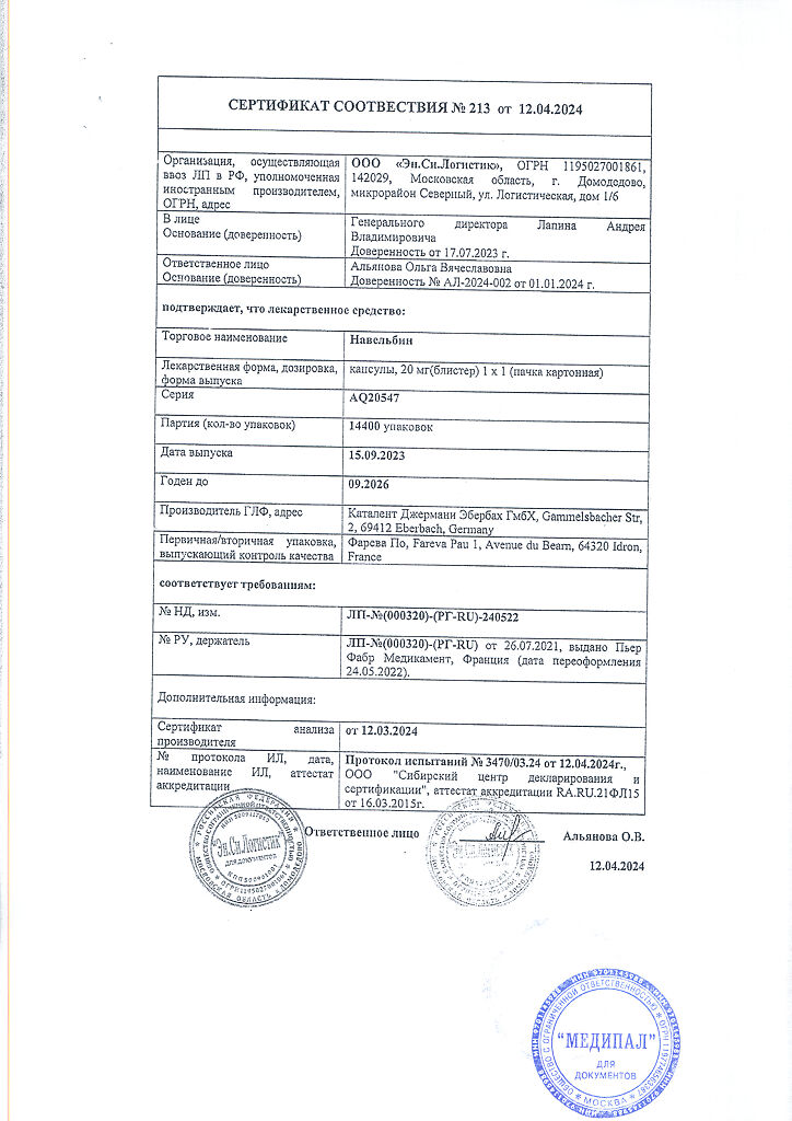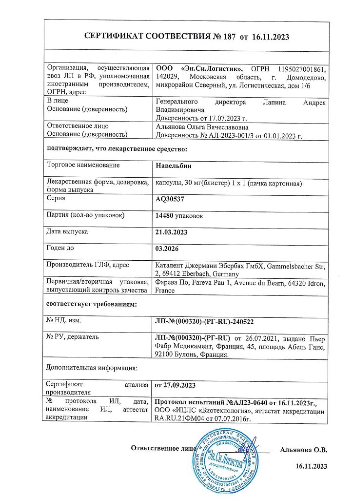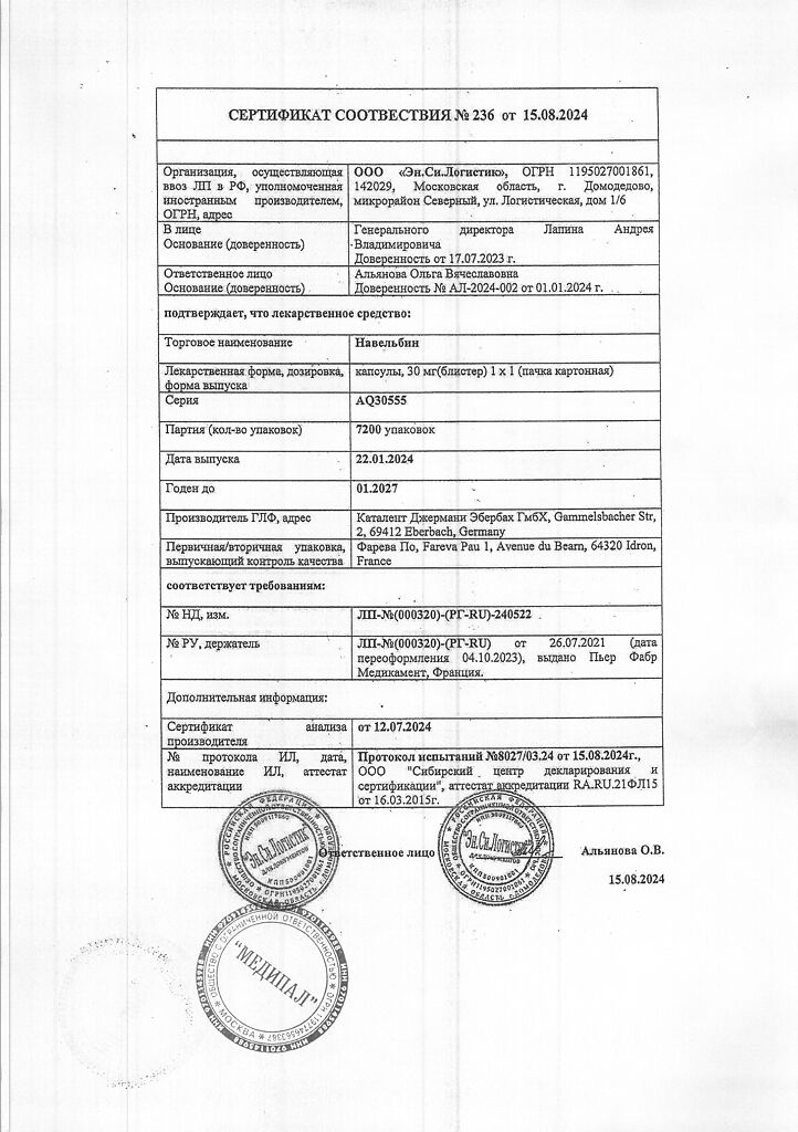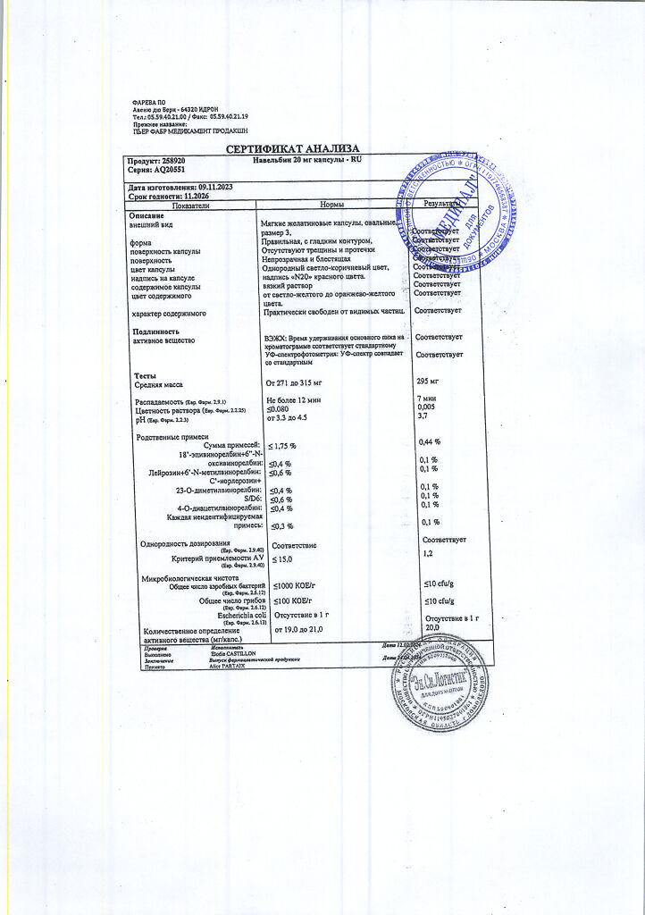 В случае появления тошноты или рвоты после приема капсул Навельбина повторно ту же дозу принимать не следует.