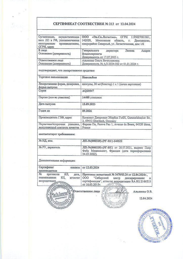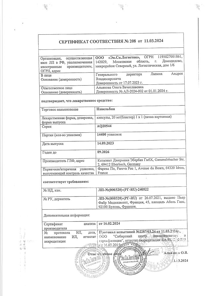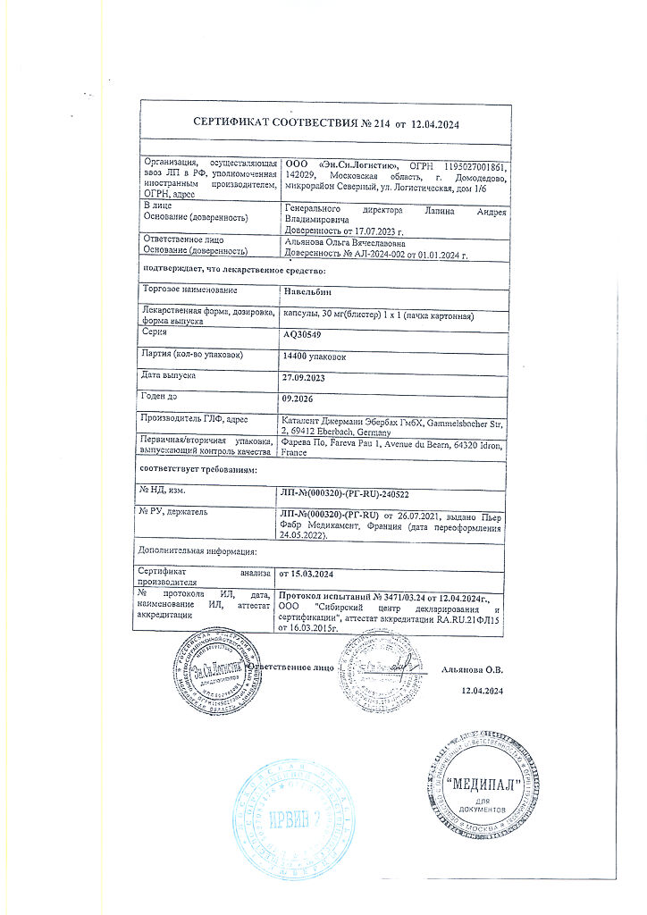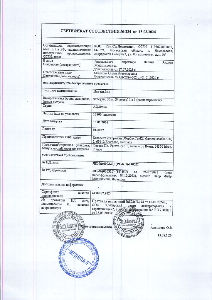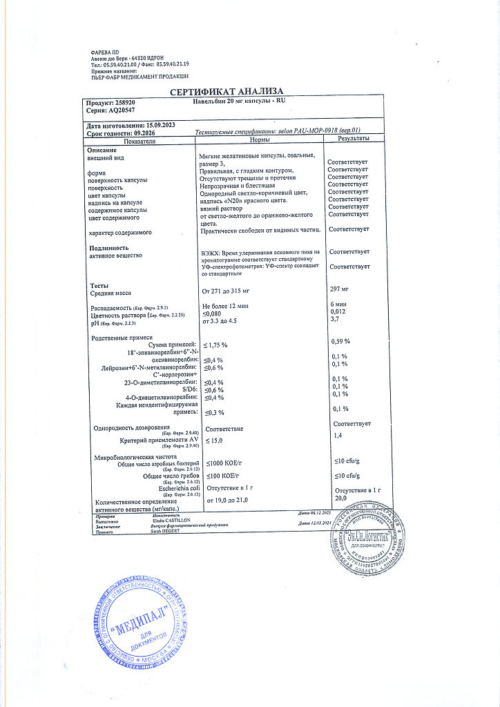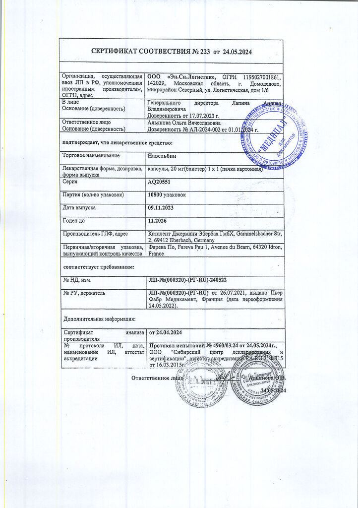 В случае появления тошноты или рвоты после приема капсул Навельбина повторно ту же дозу принимать не следует.