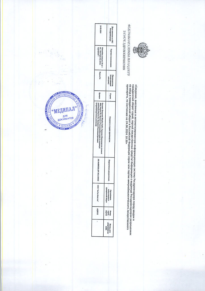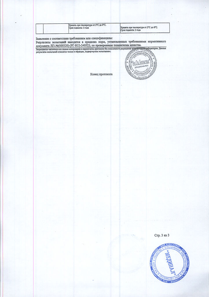С микробиологической точки зрения препарат после разведения следует использовать немедленно. Если препарат не был введен немедленно, медицинский работник берет на себя ответственность за условия и продолжительность его хранения до введения. Обычно длительность такого хранения не должна превышать 24 ч при температуре от 2° до 8°С, за исключением тех случаев, когда разбавление производили в контролируемых и валидированных асептических условиях.