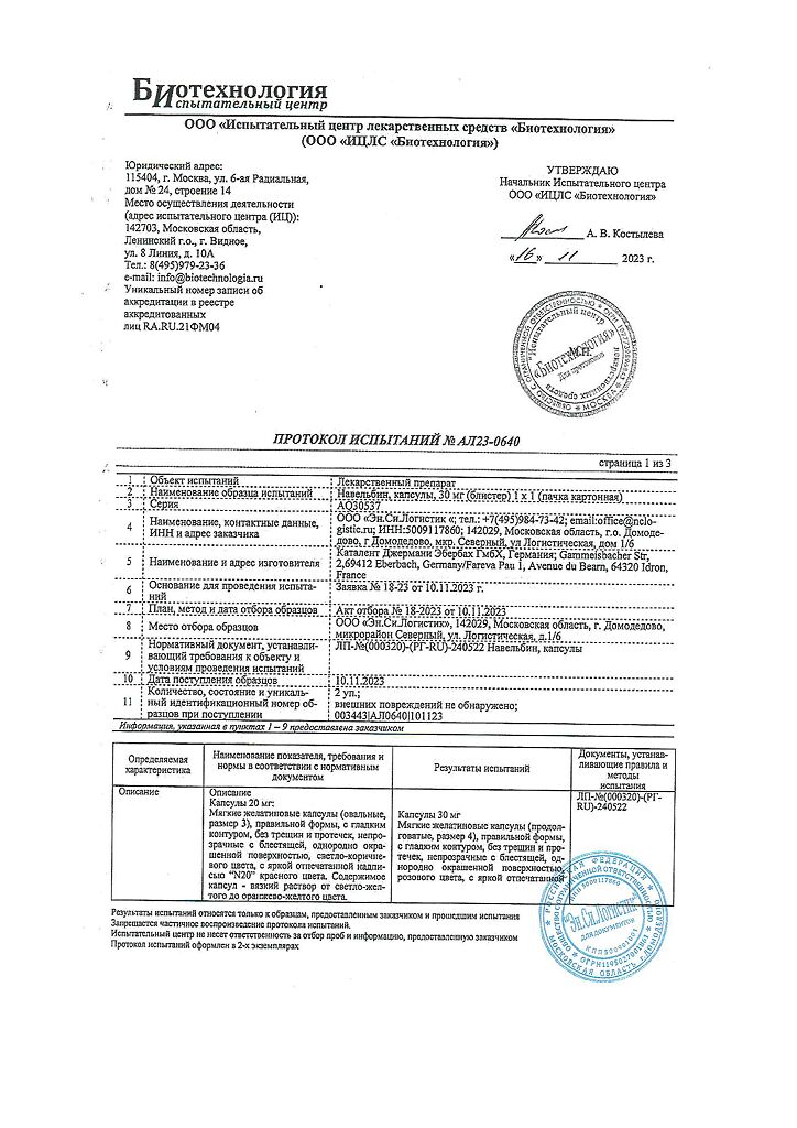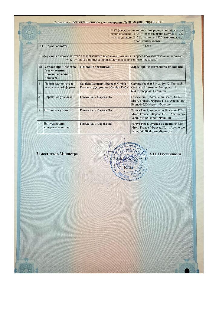 Производитель: Каталент Джермани Эбербах ГмбХ, Германия