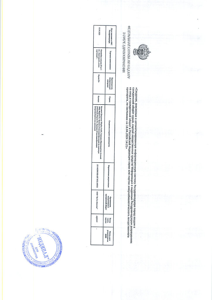 Хранить в недоступном для детей месте при температуре от 2° до 8°С.