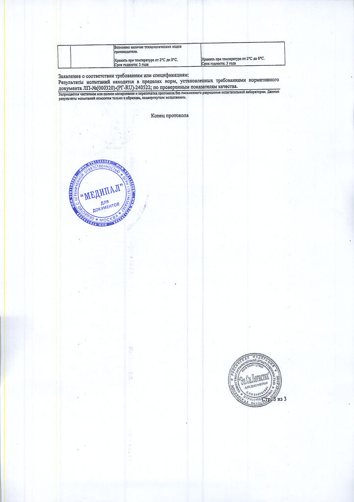 Во флаконе 1 мл концентрата. В термоконтейнере 10 флаконов. В картонной упаковке 1 термоконтейнер.
