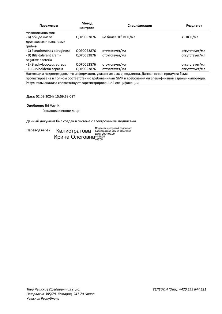 Производитель: Тева Чешские Предприятия с.р.о., Чешская Республика