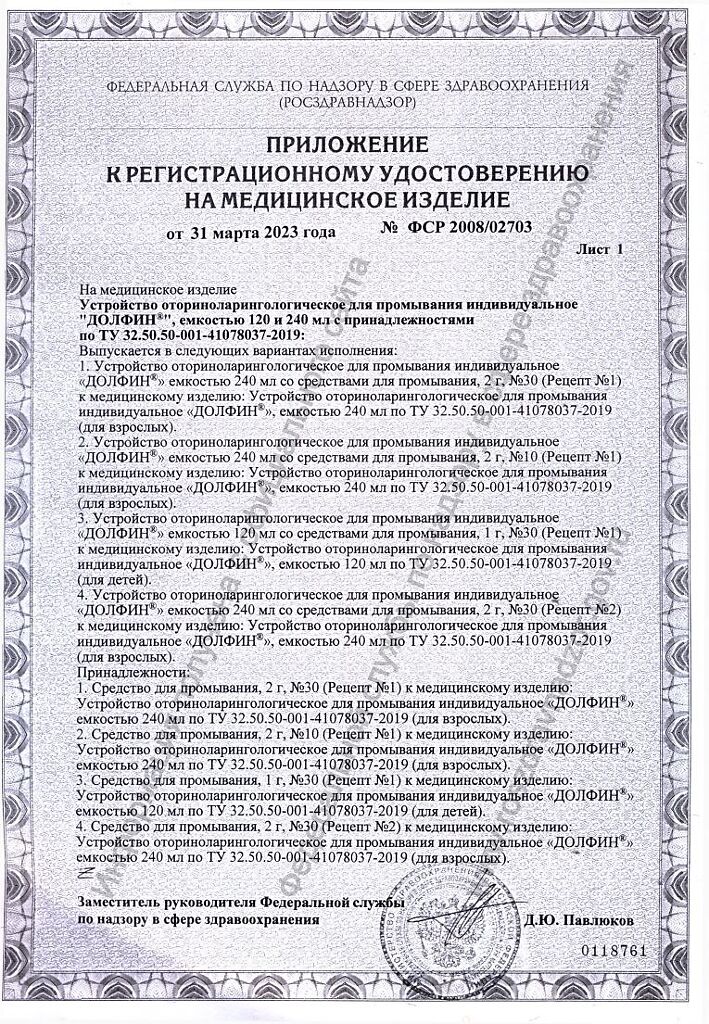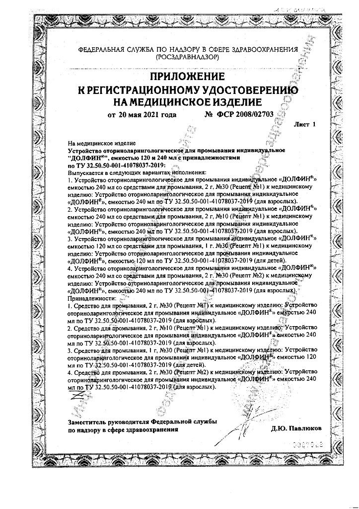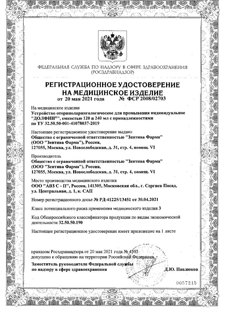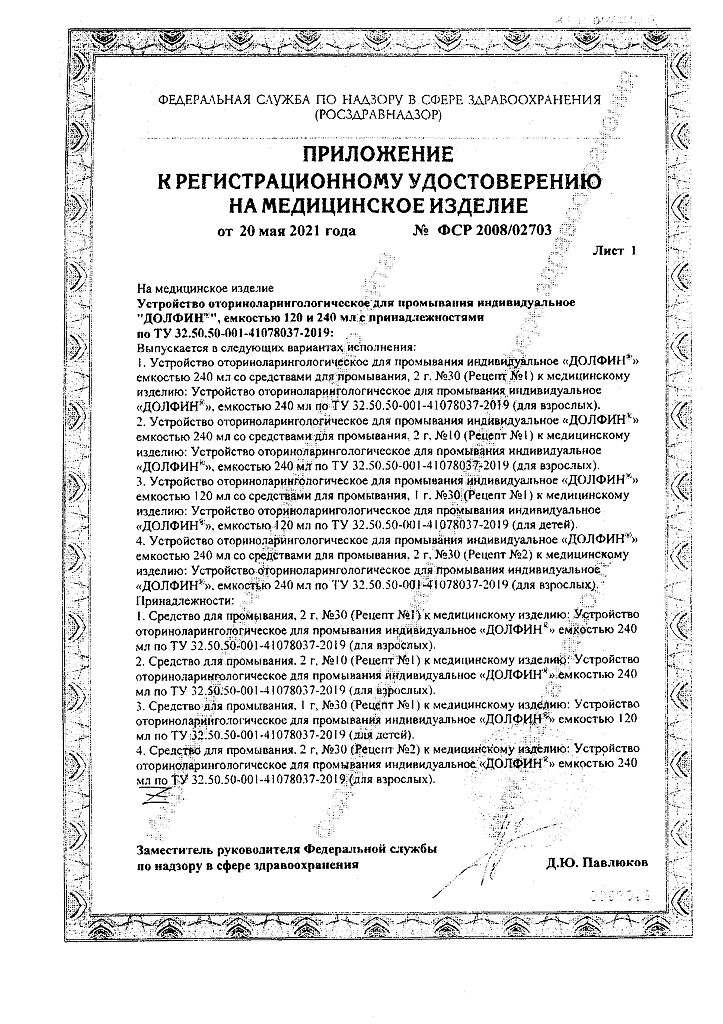 Долфин — это специальный комплекс, предназначенный для промывания детских носиков. Позволяет бережно и безболезненно удалить из носа и носоглотки патологические выделения, уменьшить воспаление и улучшить носовое дыхание за счет уменьшения размеров аденоидов.