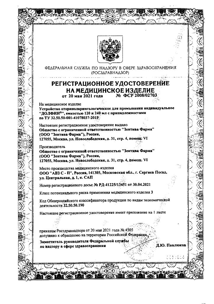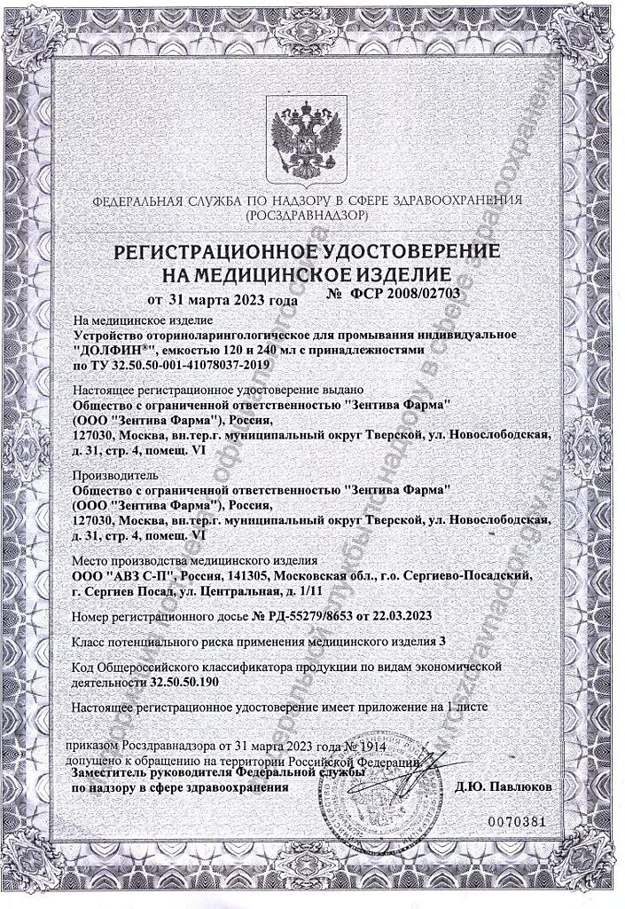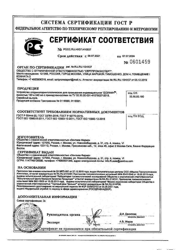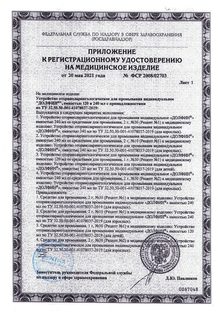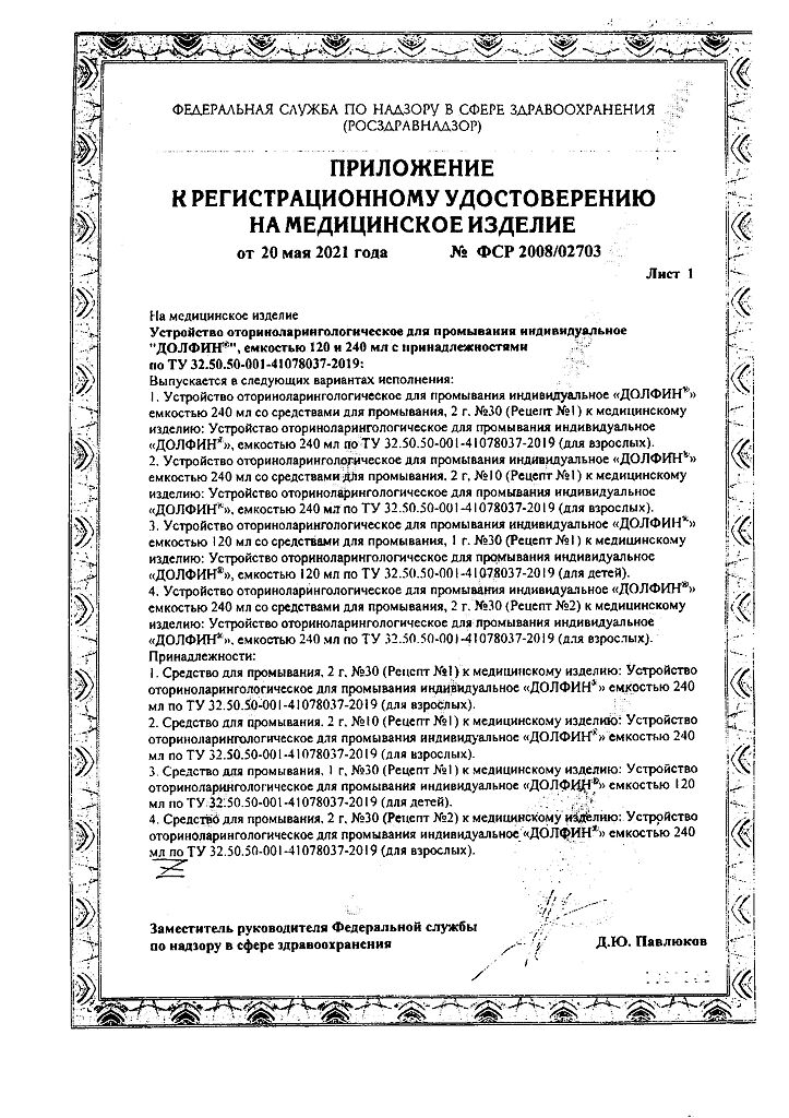 Долфин — это специальный комплекс, предназначенный для промывания детских носиков. Позволяет бережно и безболезненно удалить из носа и носоглотки патологические выделения, уменьшить воспаление и улучшить носовое дыхание за счет уменьшения размеров аденоидов.