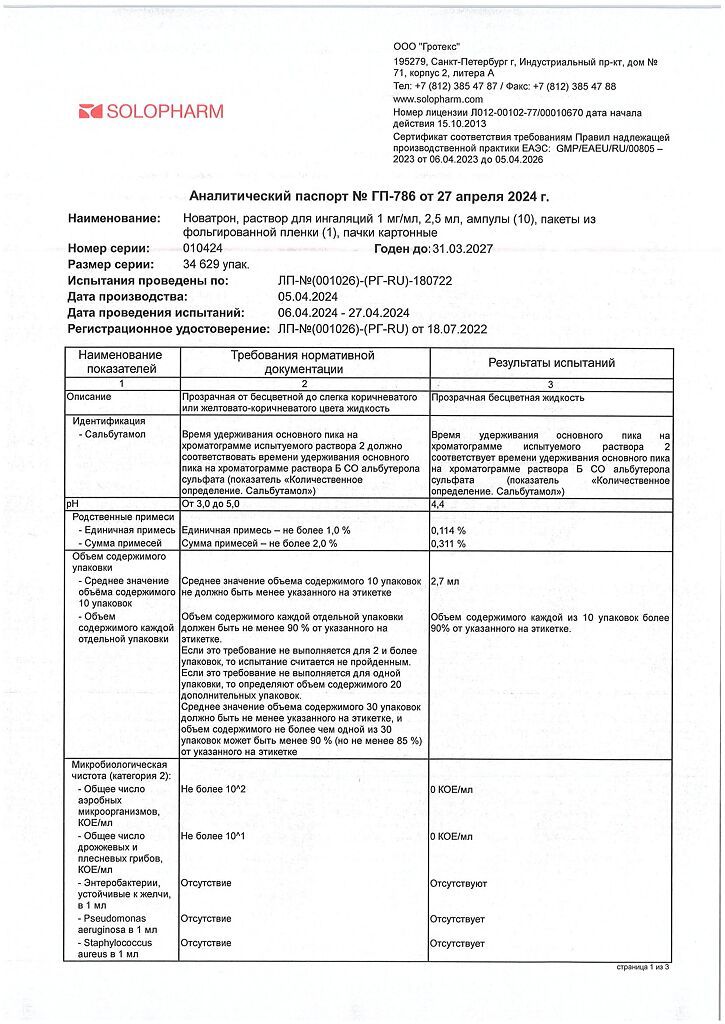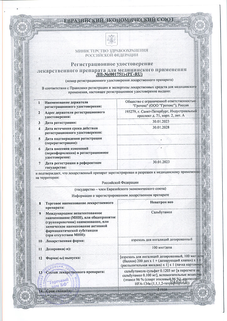 Препарат Новатрон применяют ингаляционно с помощью ингаляторов-небулайзеров (см. раздел "Порядок работы с препаратом" настоящей инструкции).