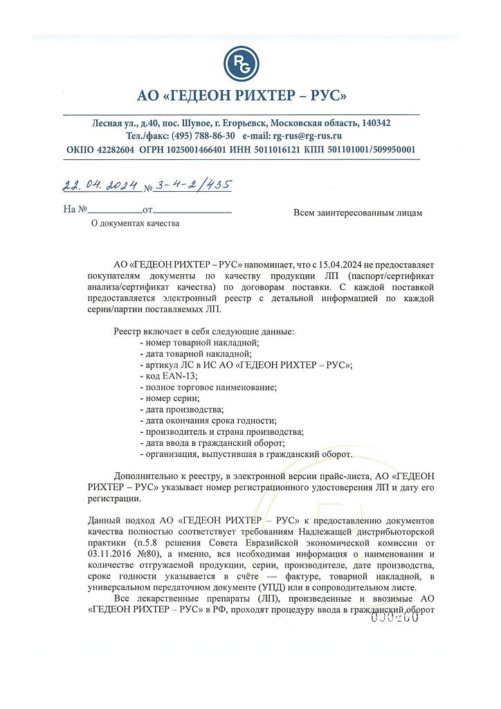 Страница носит информационный характер о наличии препаратов. Перед назначением и применением проконсультируйтесь с врачом