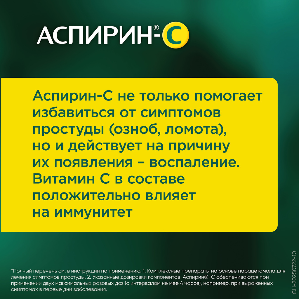 Средняя разовая доза Аспирин-С для взрослых составляет 1-2 таблетки, максимальная суточная доза - 8-10 таблеток.