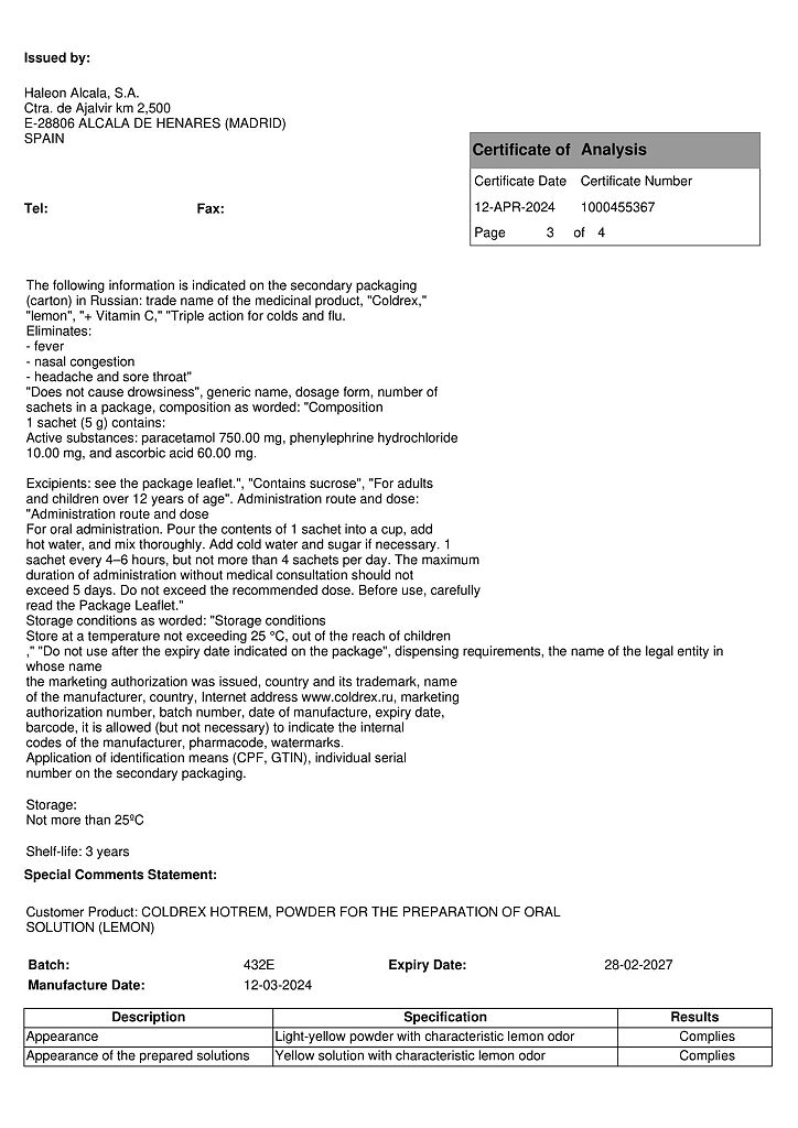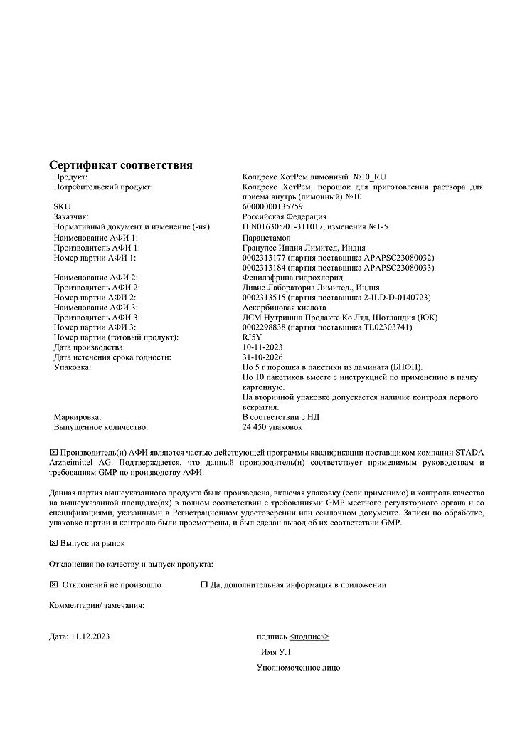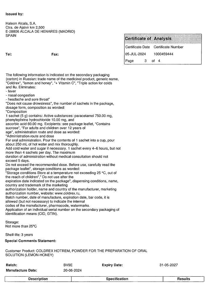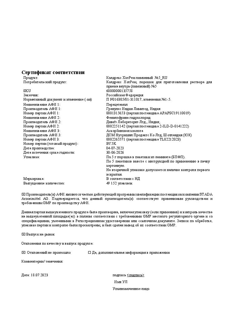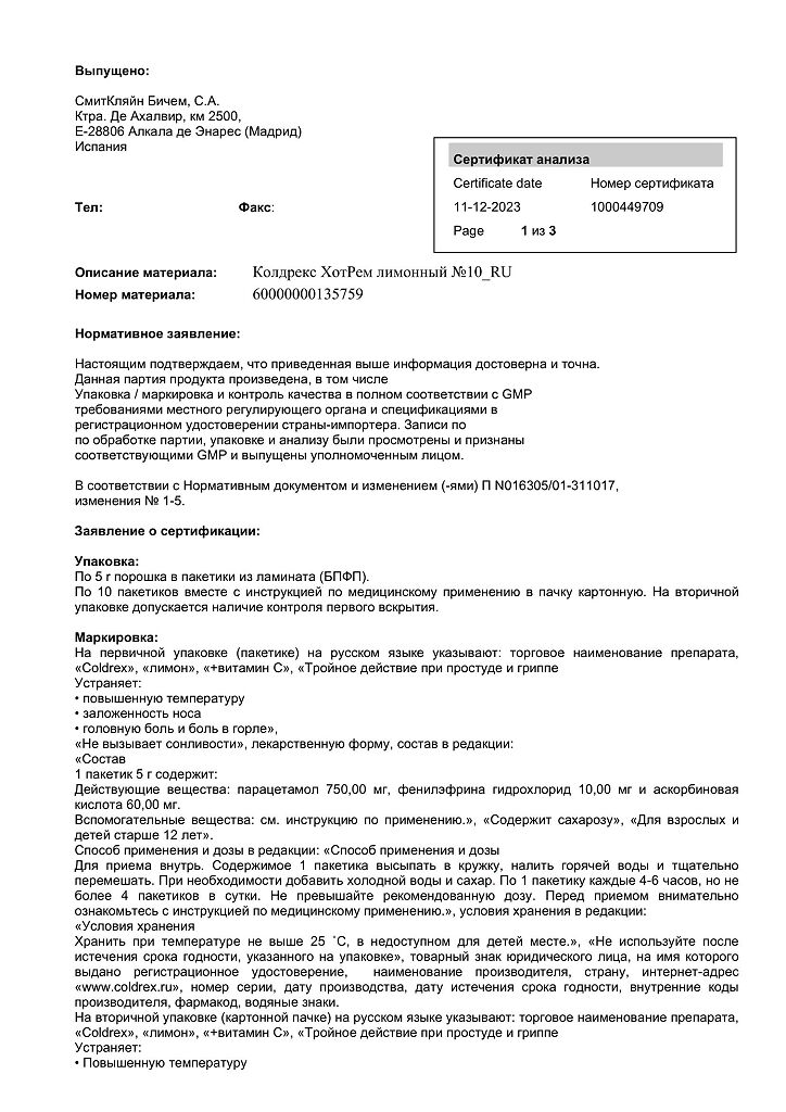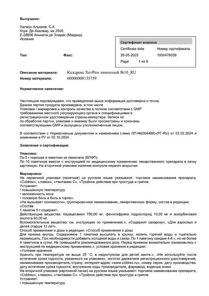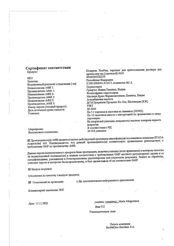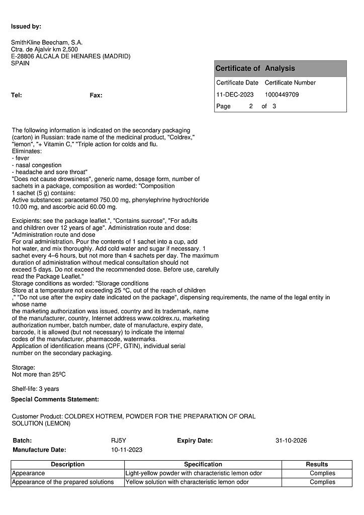 При проведении анализов на определение мочевой кислоты иуровня глюкозы в крови пациент должен сообщить врачу о применении препарата Колдрекс ХотРем, т.к. препарат может искажать результаты лабораторных тестов, оценивающих концентрацию глюкозы и мочевой кислоты.