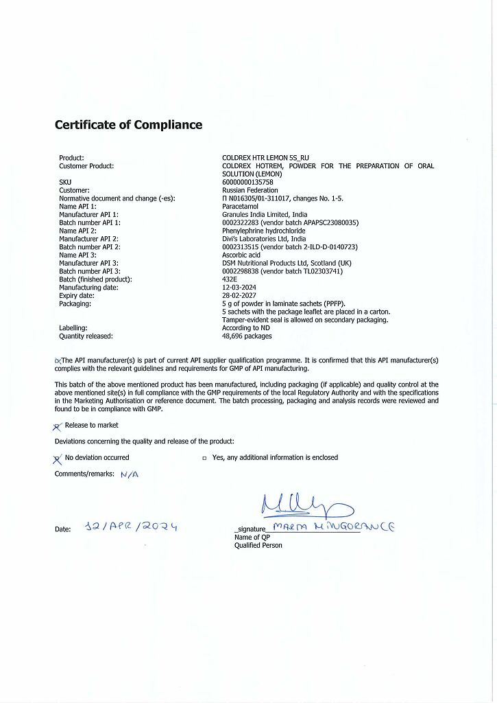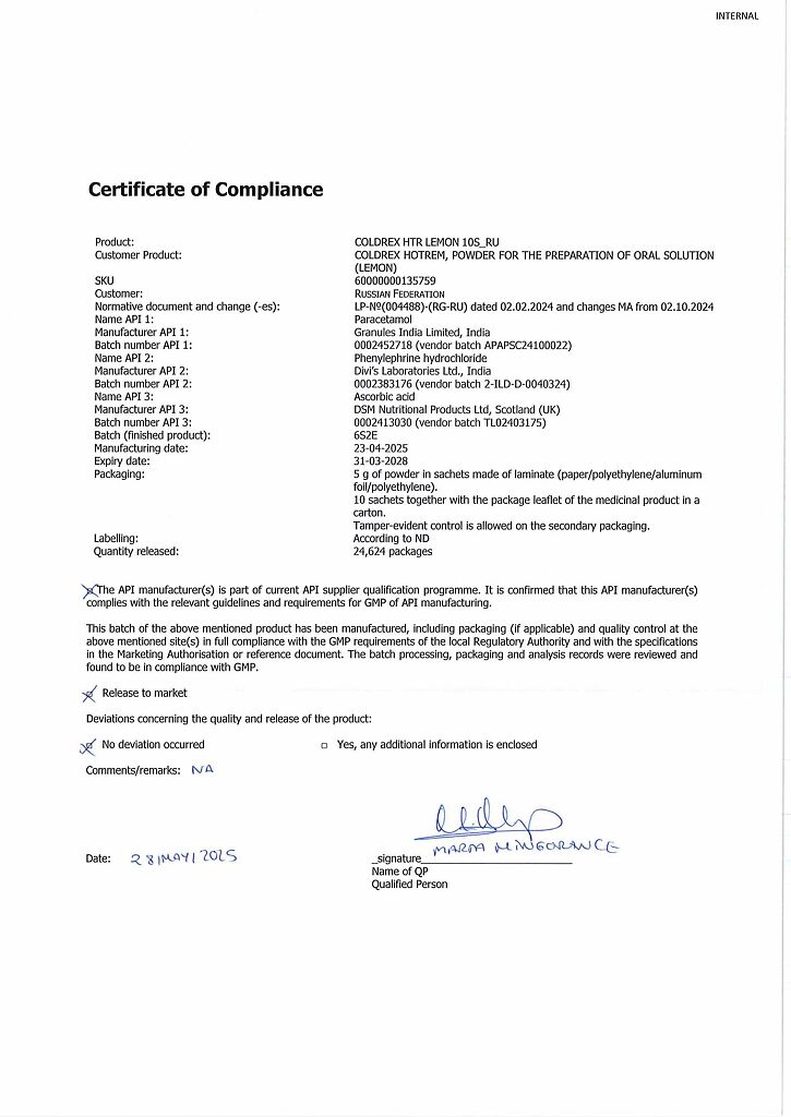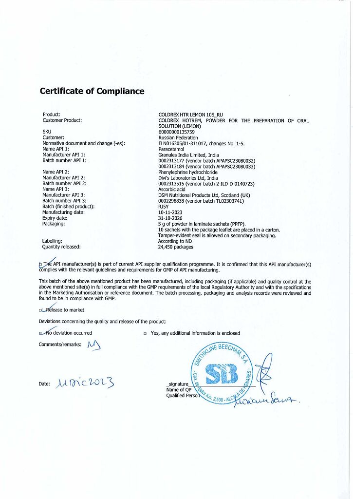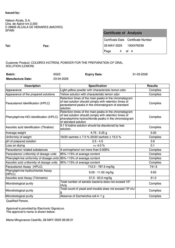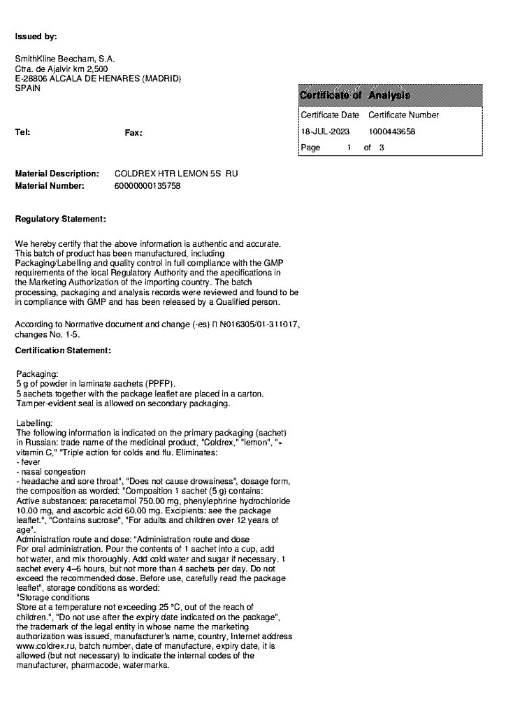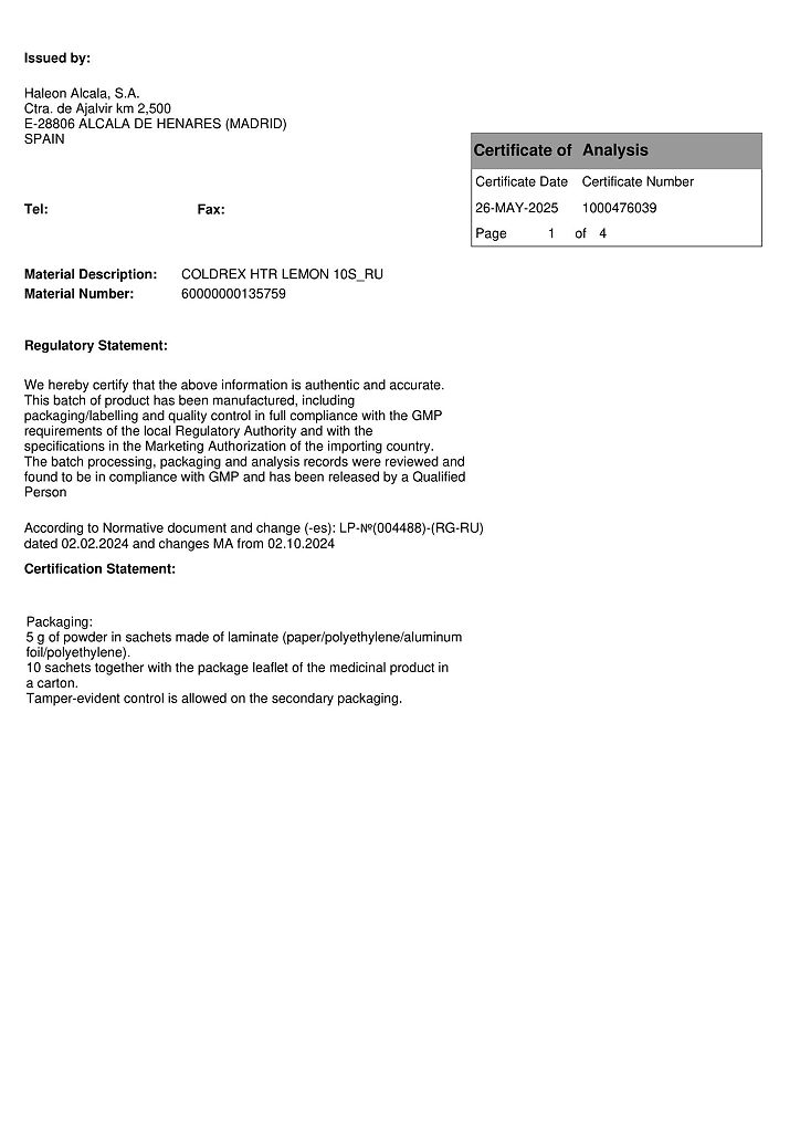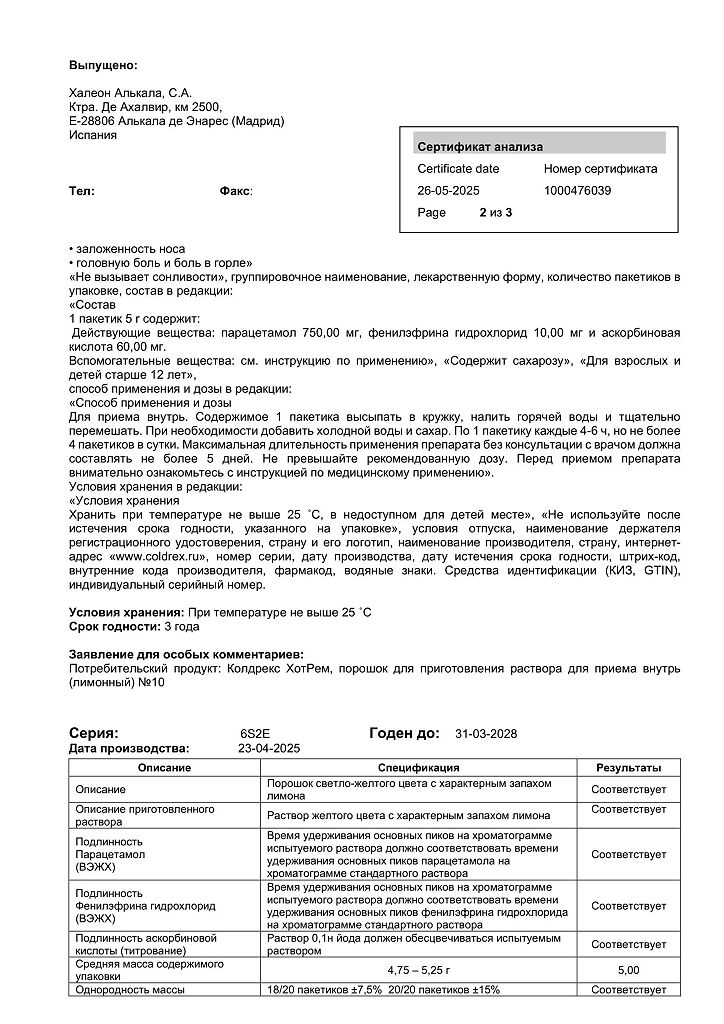 При проведении анализов на определение мочевой кислоты иуровня глюкозы в крови пациент должен сообщить врачу о применении препарата Колдрекс ХотРем, т.к. препарат может искажать результаты лабораторных тестов, оценивающих концентрацию глюкозы и мочевой кислоты.