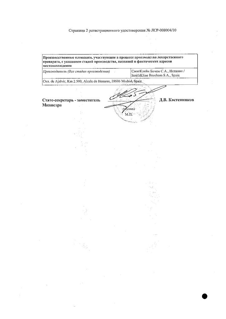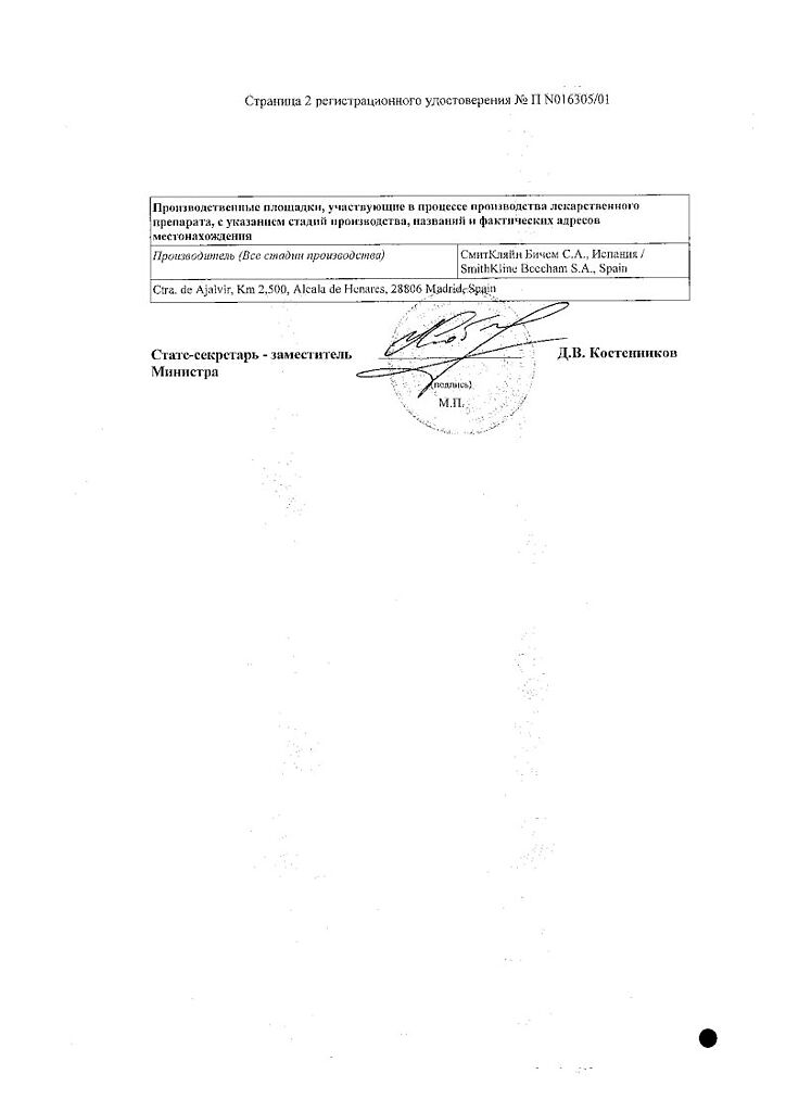 Производитель: СмитКляйн Бичем С.А., Испания