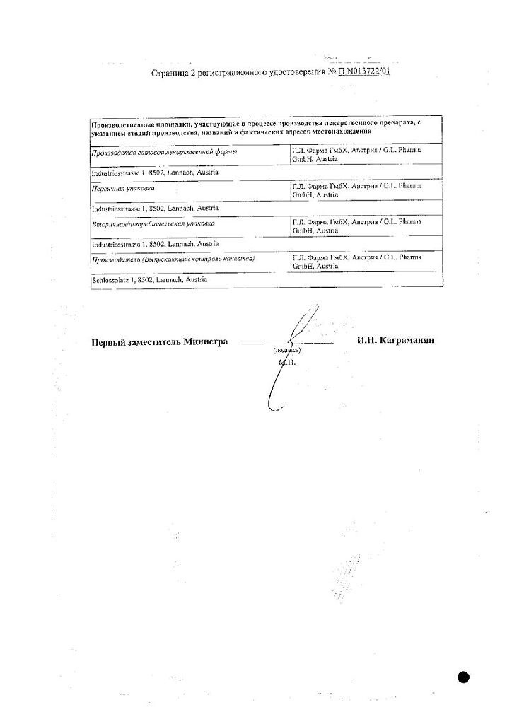 Производитель: Г.Л.Фарма ГмбХ, Австрия