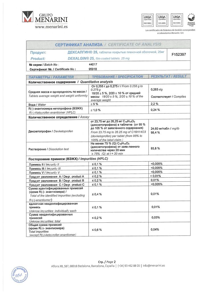 Подобно другим НПВП, декскетопрофен может маскировать симптомы инфекционных заболеваний. В случае обнаружения признаков инфекции или ухудшения самочувствия на фоне применения препарата Дексалгин® пациенту необходимо сразу же обратиться к врачу.