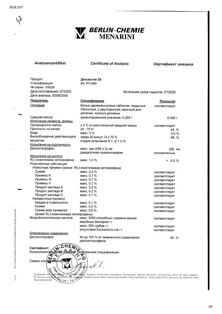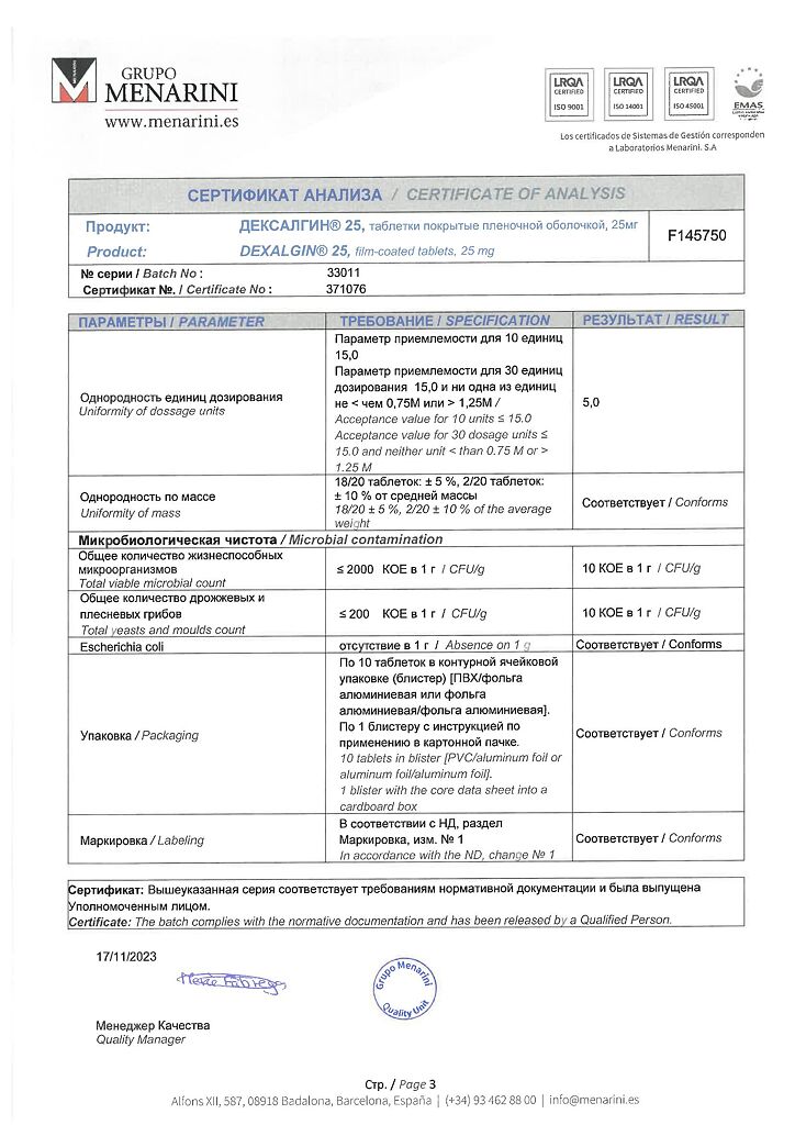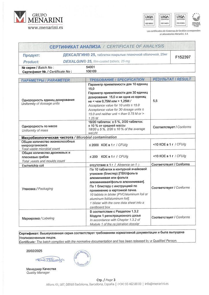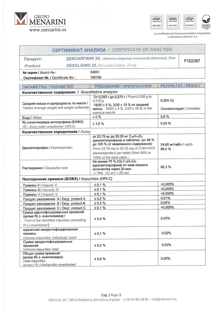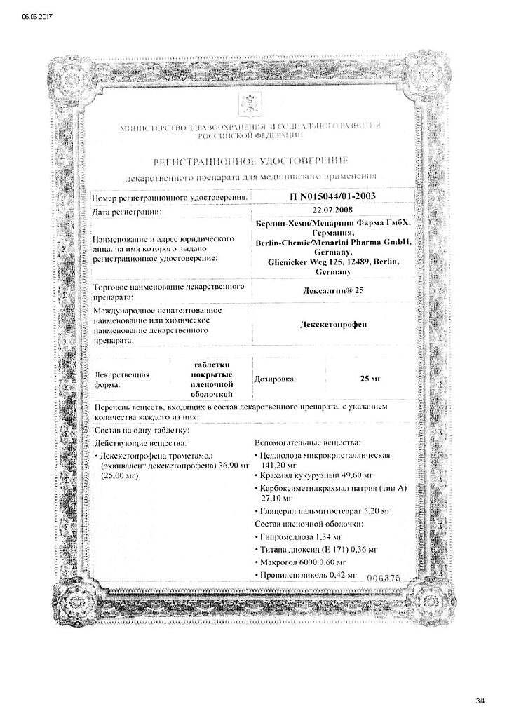 Препарат Дексалгин® не предназначен для длительной терапии, курс лечения препаратом должен быть ограничен периодом проявления симптомов, но не должен превышать 3-5 дней.