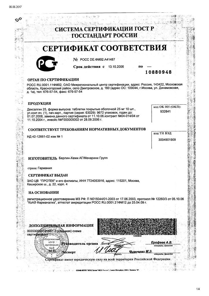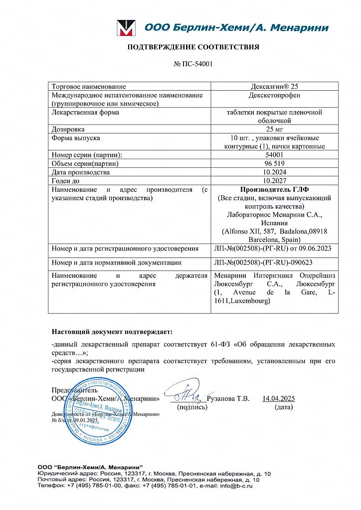 В случае необходимости одновременного применения препарата Дексалгин® с вышеперечисленными лекарственными средствами следует проконсультироваться с врачом.