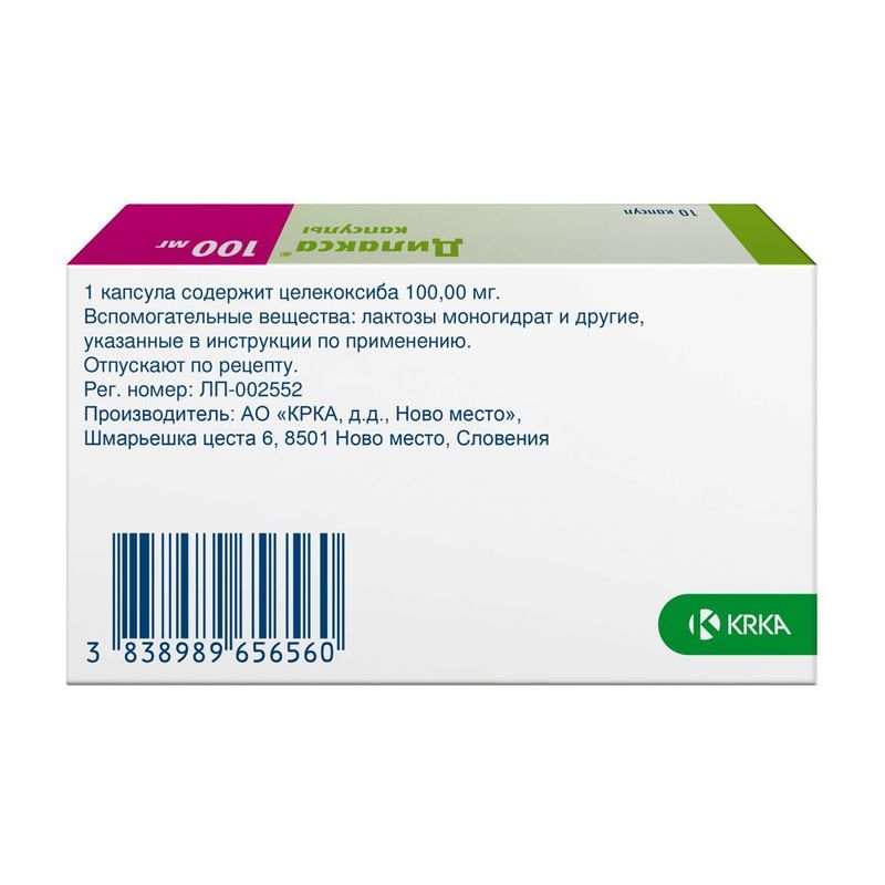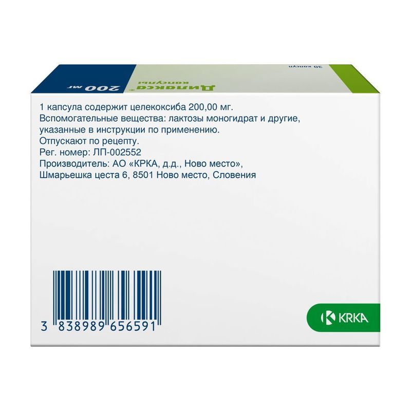 счет ингибирования циклооксигеназы-2 (ЦОГ-2). Индукция ЦОГ-2 происходит в ответ на воспаление и приводит к синтезу и накоплению Pg, прежде всего PgE2, что вызывает усиление проявлений воспаления (отек и боль). В терапевтических дозах у человека целекоксиб значимо не ингибирует циклооксигеназу-1 (ЦОГ-1) и не оказывает влияния на концентрации Pg, которые синтезируются в результате активации ЦОГ-1, а также на нормальные физиологические процессы, связанные с ЦОГ-1 и протекающие в тканях, прежде всего желудка, кишечника и тромбоцитах.