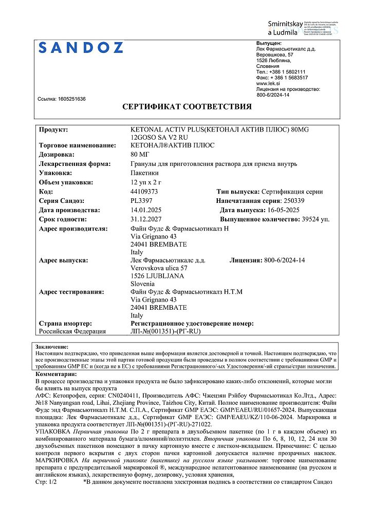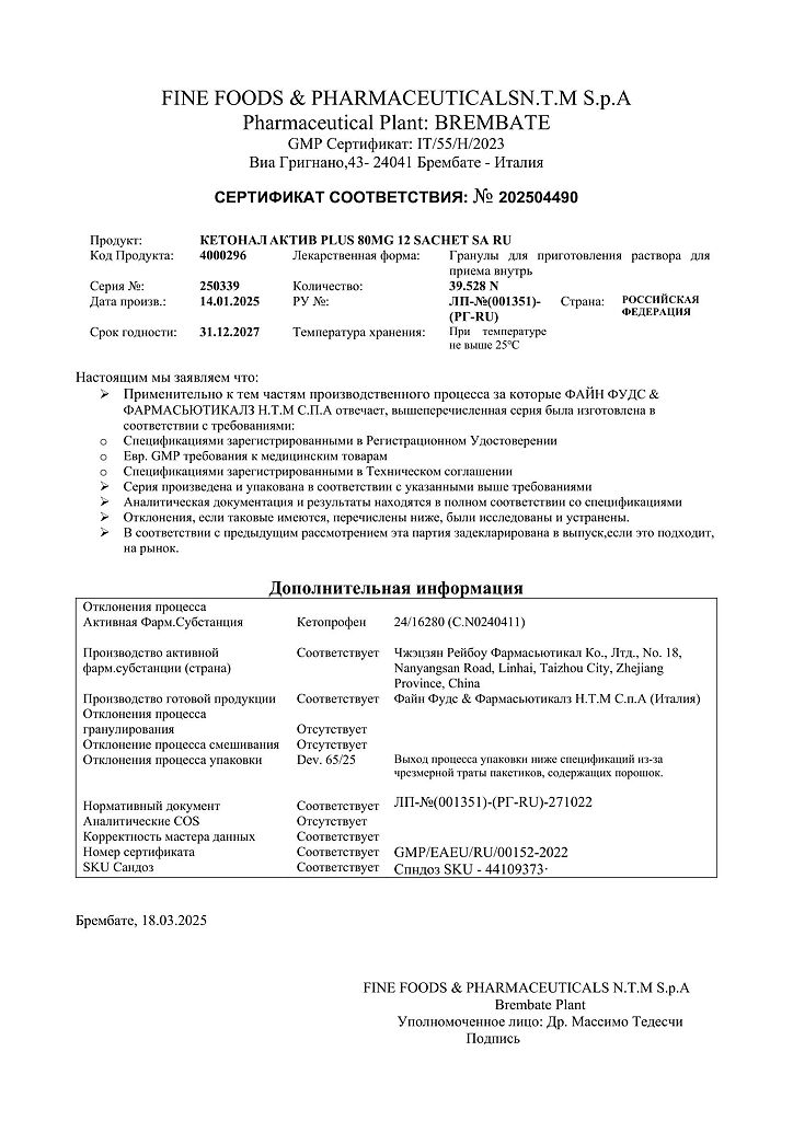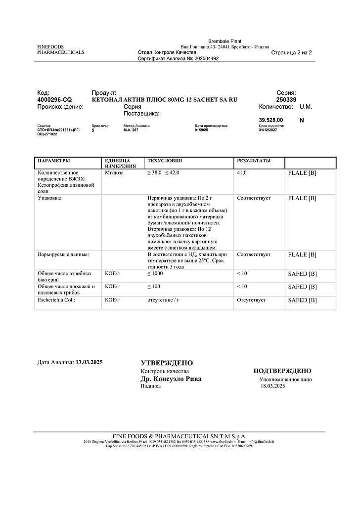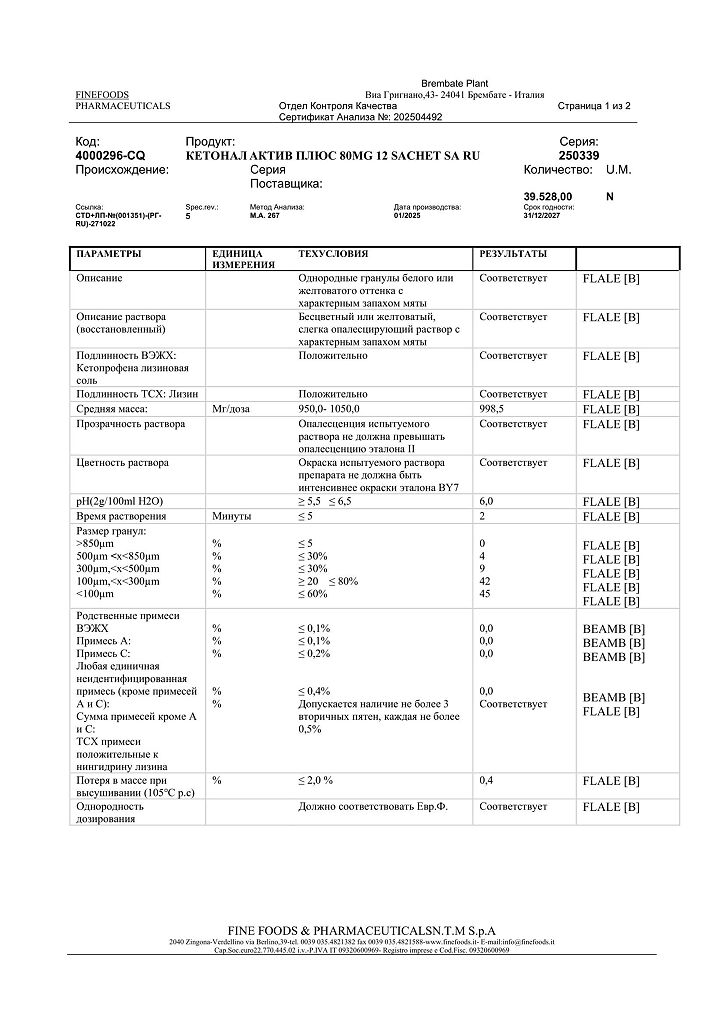 Производитель: Файн Фудс & Фармасьютикалз Н.Т.М. С.П.А., Италия