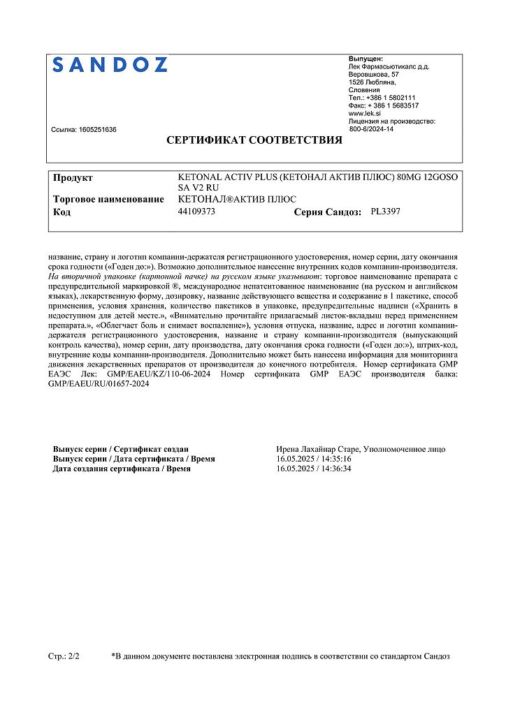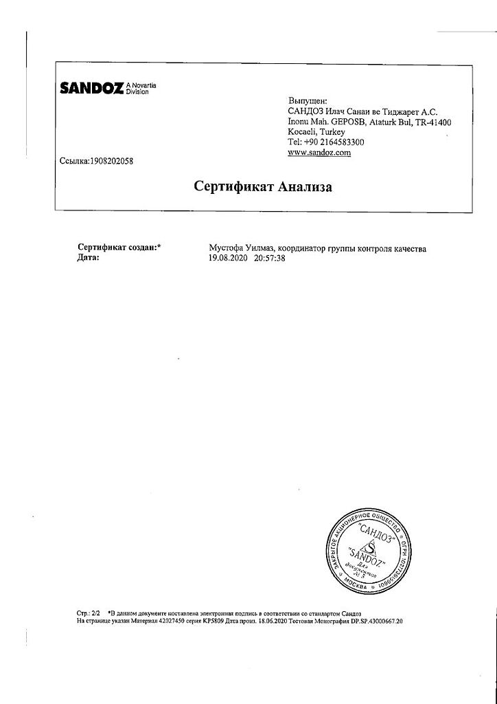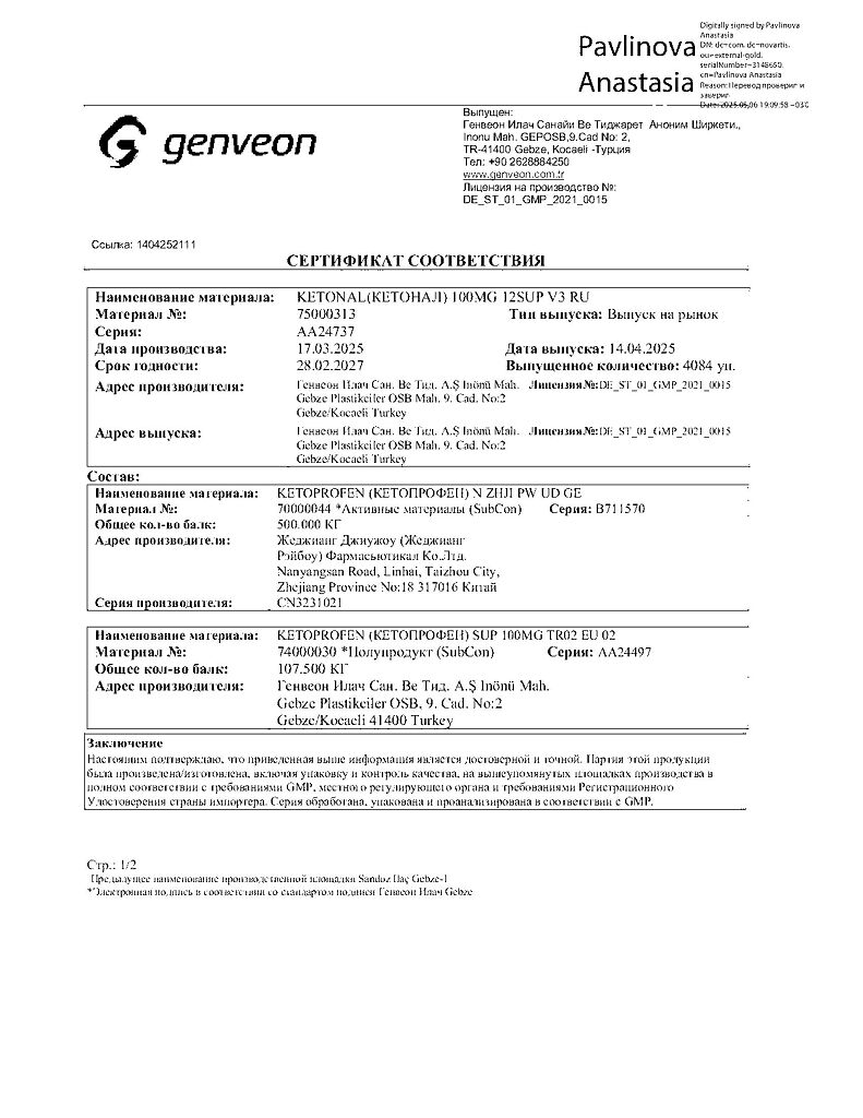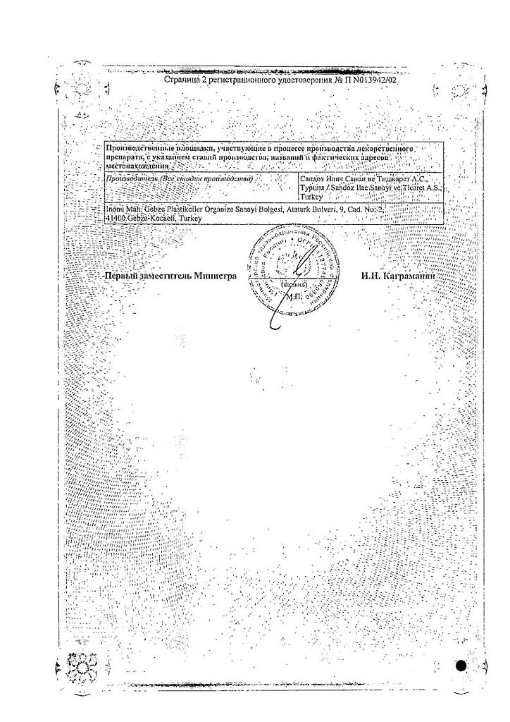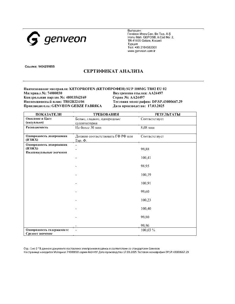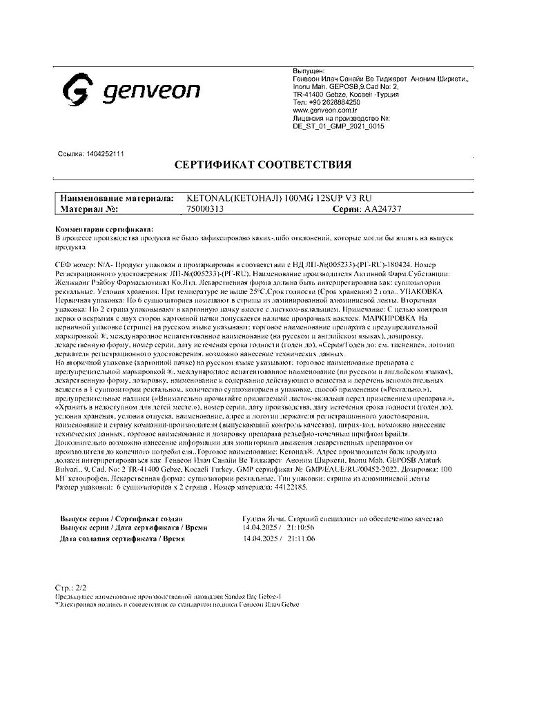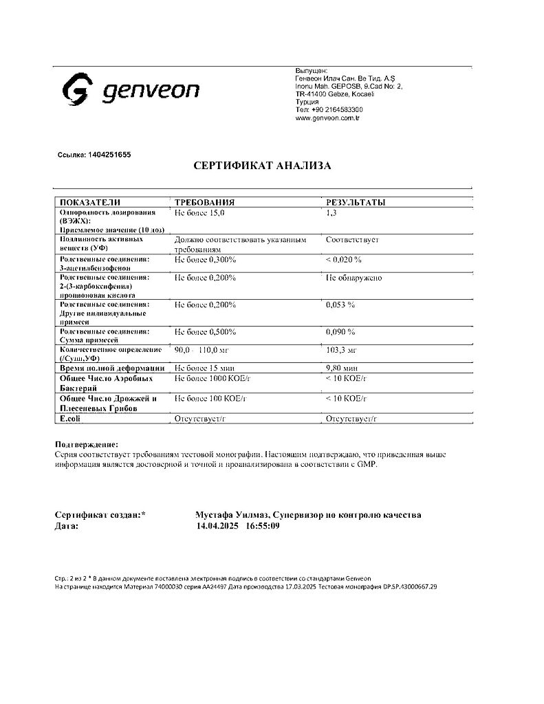 Производитель: Генвеон Илач Санайи Ве Тиджарет Аноним Ширкети, Турция