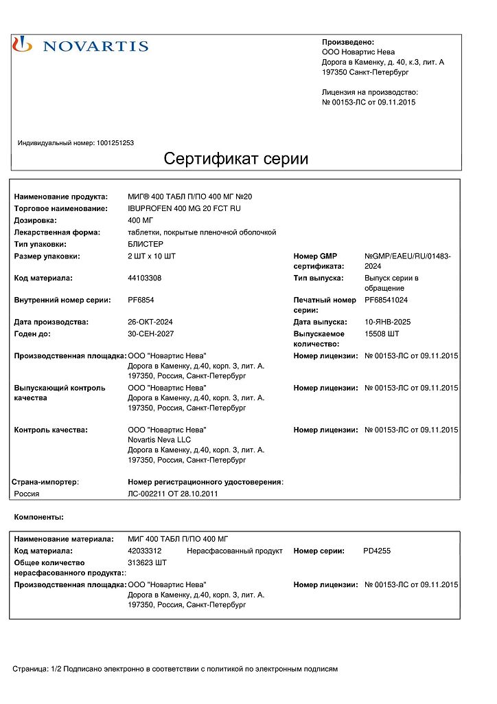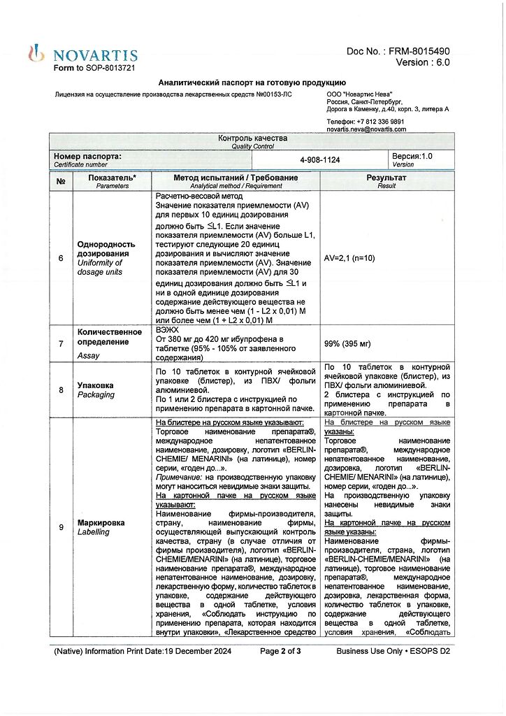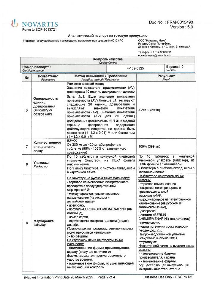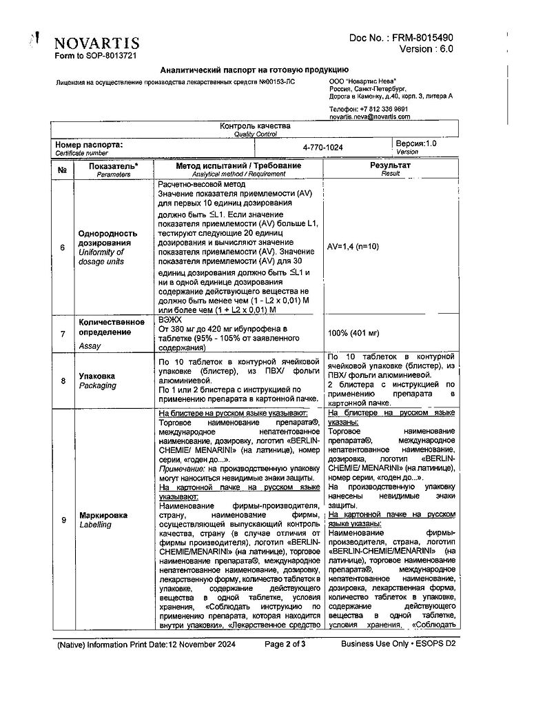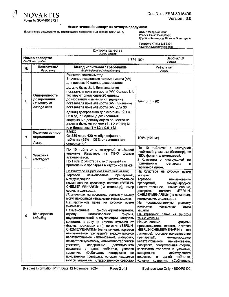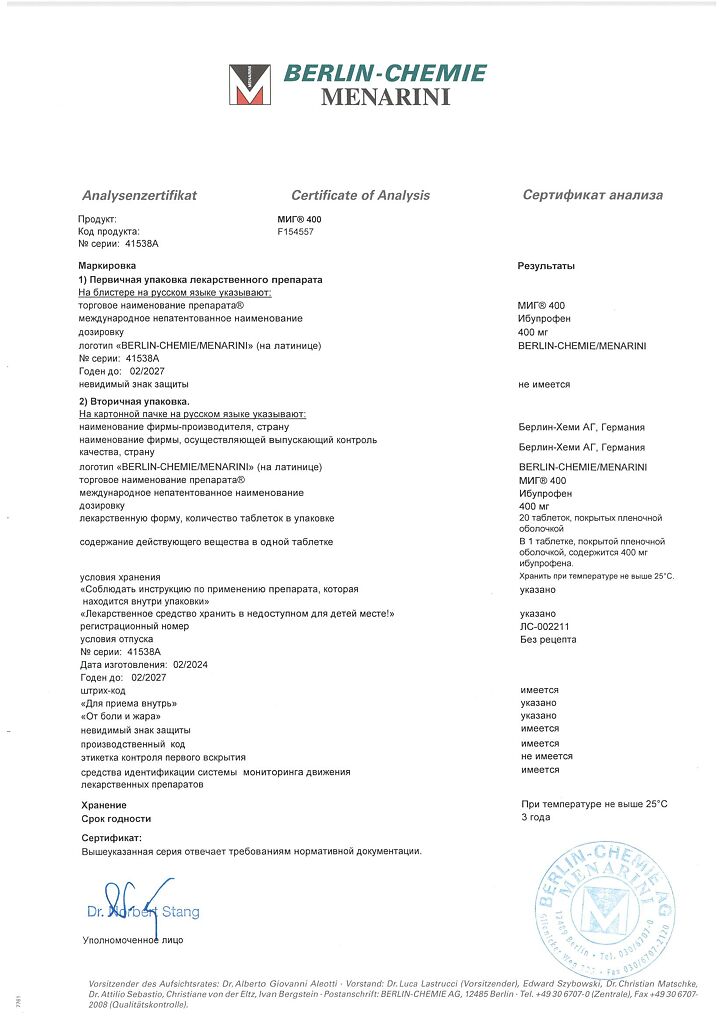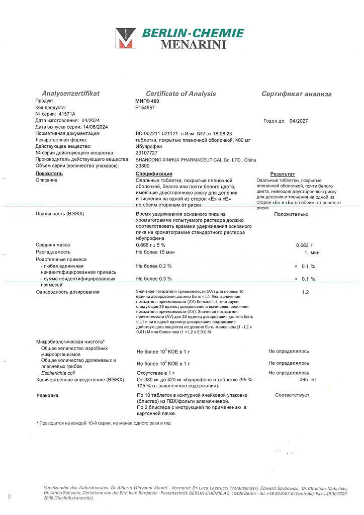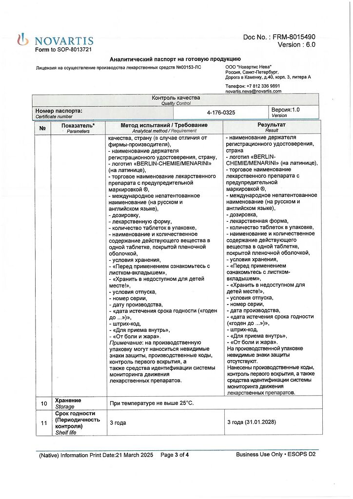 Производитель: Берлин-Хеми/Менарини/Новартис Фарма, Германия
