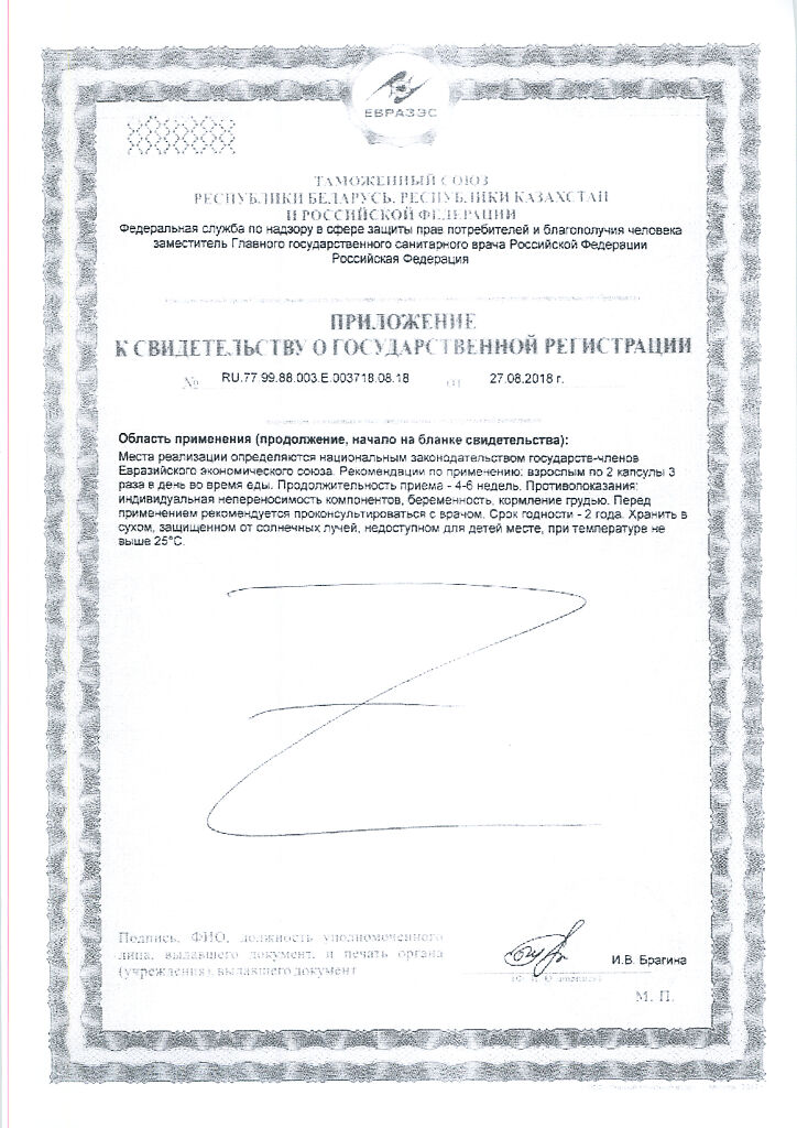 Взрослым по 2 капсулы 3 раза в день во время еды. Продолжительность приема – 4-6 недель. Прием 6 капсул в день обеспечивает 11 % адекватного уровня потребления растворимых пищевых волокон (210 мг).