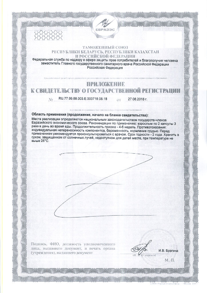 1 капсула содержит: гвоздика – 200 мг, имбирь сушеный – 70 мг, волокно овсяное – 70 мг, экстракт овса сухой – 25 мг, экстракт имбиря сухой – 15 мг, экстракт грецкого ореха – 15 мг.
