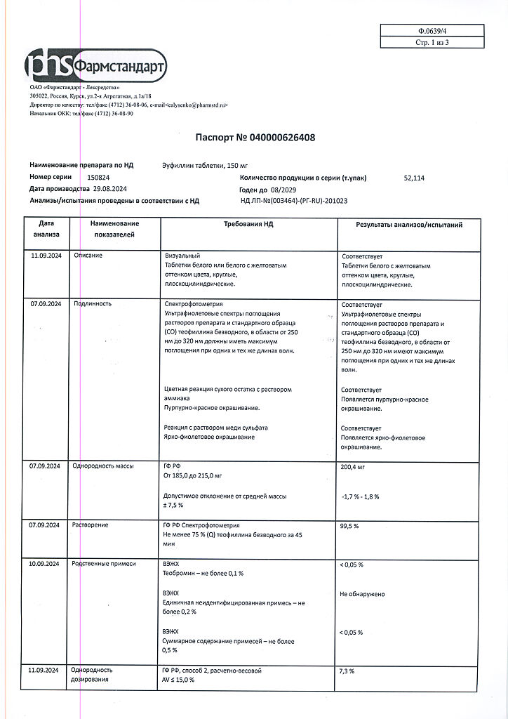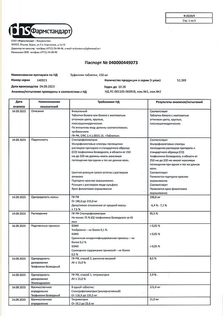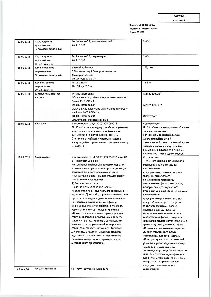 T1/2 теофиллина у некурящих пациентов с бронхиальной астмой практически без патологических изменений со стороны других органов и систем составляет 6-12 часов, у курящих - 4-5 часов, у детей - 1-5 часов, у новорожденных и недоношенных детей - 10-45 часов.